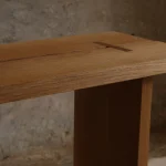 This bench by Mike Hausmann is the most minimalist piece in the collection. It is designed with a through mortise and tenon joint featuring a double setback to provide a greater gluing surface.