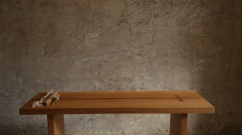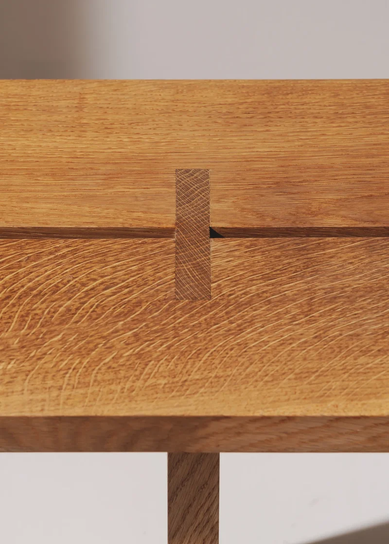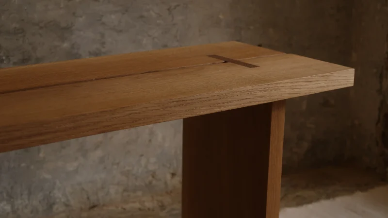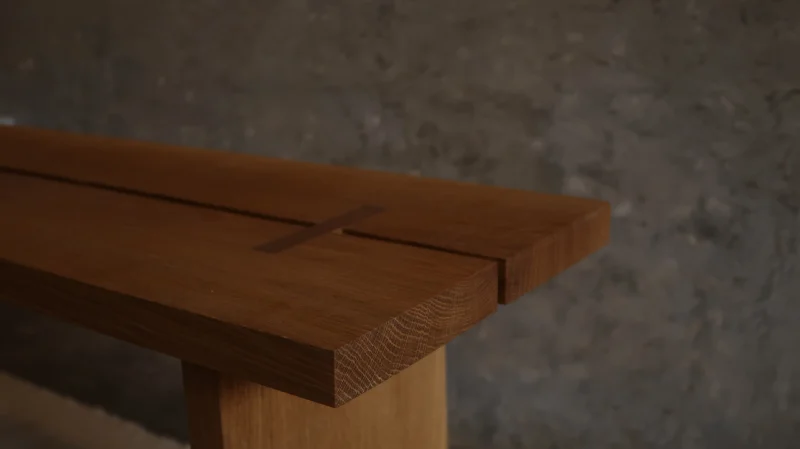 This bench by Mike Hausmann is the most minimalist piece in the collection. It is designed with a through mortise and tenon joint featuring a double setback to provide a greater gluing surface.