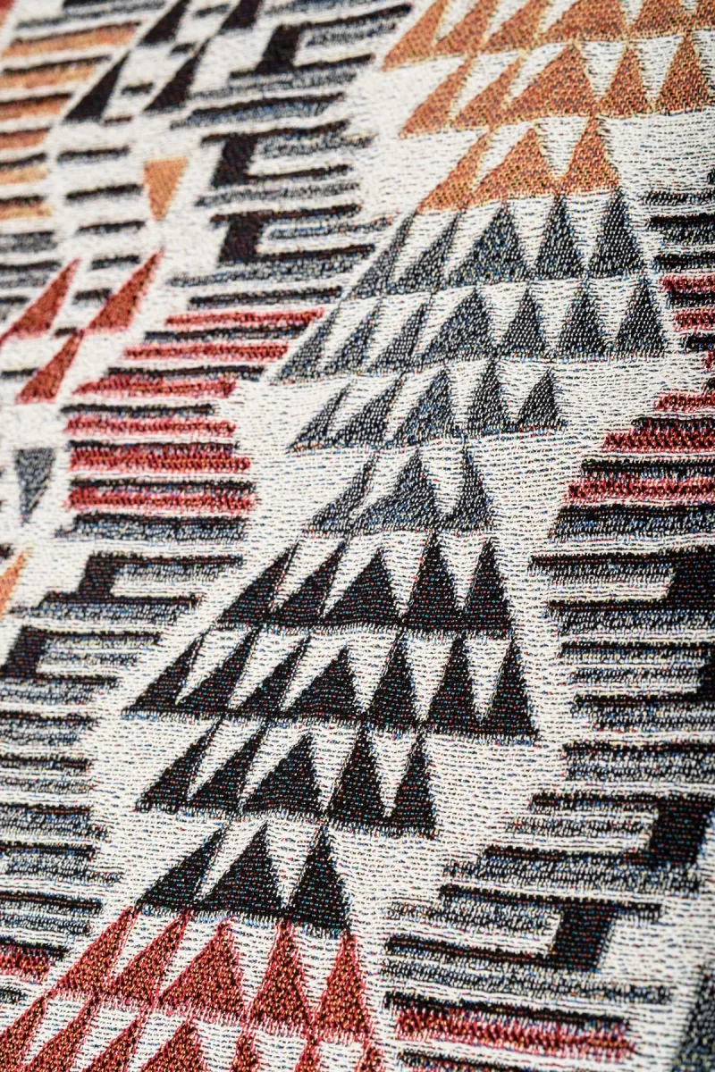 “Kilim Dream” is a woven jacquard throw / blanket or wall tapestry made from 100% cotton, highlighting re-invented vintage patterns for a timeless home accessory. Made in USA.