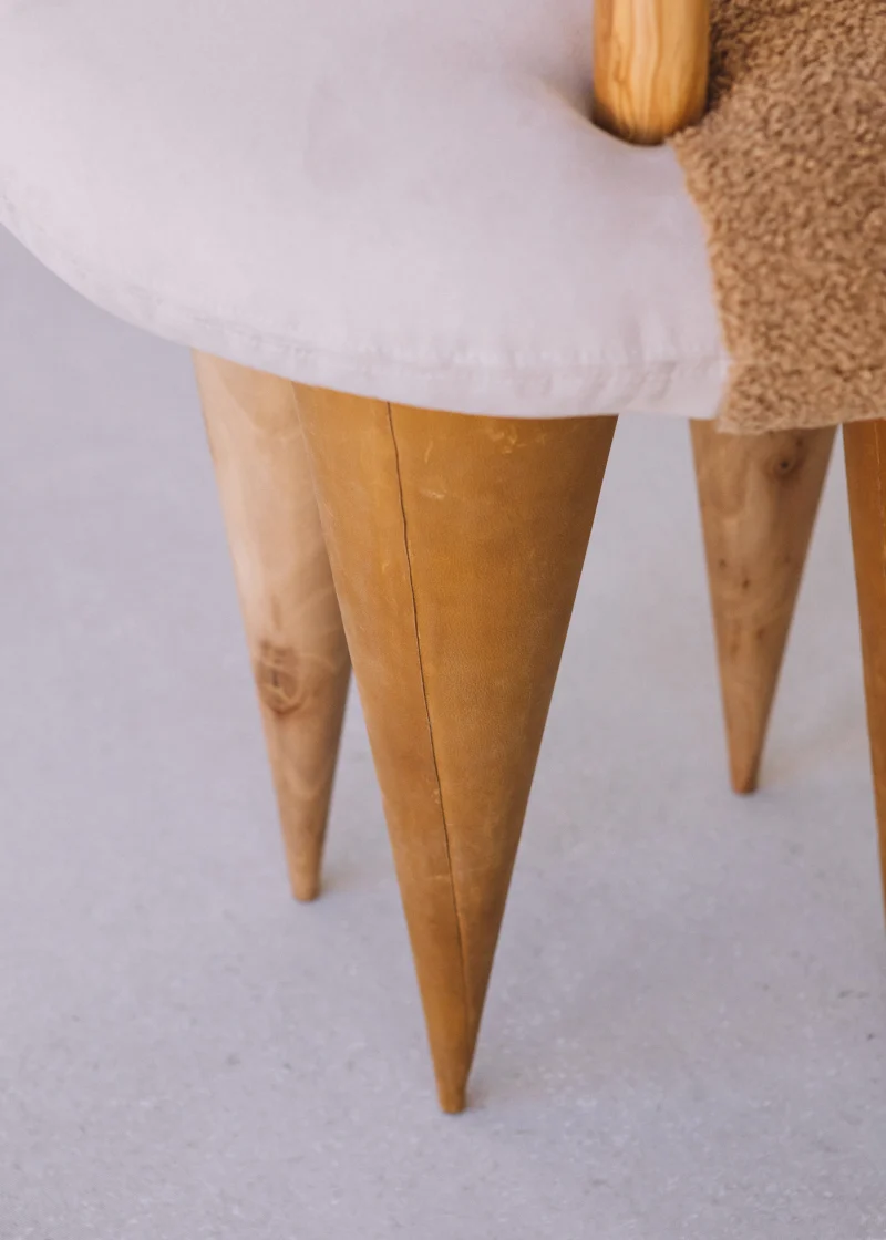 The King Ooo Chair by Worn Studio, a Spanish furniture and product studio founded by Designer Natalia Ortega, embodies contemporary design and craftsmanship. Spanish artisans meticulously craft the chair from turned wood and turned marble legs, reflecting the studio’s commitment to quality and artistry. Infused with Bauhaus and eclectic design elements, this chair seamlessly combines modernist philosophy with avant-garde aesthetics. A manifestation of Natalia Ortega’s dedication to intentional design, the Ooo Chair is a unique blend of traditional craftsmanship and innovative design, making it a standout statement piece in any contemporary living space.
