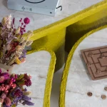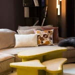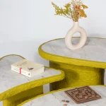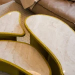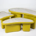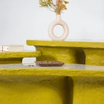 How do you combine high quality and elegance with the allure of playfulness? Studio Bovti asked itself this question and answered it with the help of an unusual material composition. Cartapesta is the expression of the joy of experimenting and daring new combinations.Colorfulness and stone express these qualities, supported by the wild and bright texture of the cardboard mesh. One often has the impression that elegance must not be daring and must be very strict in its form and materiality. Our answer to this is that elegance must also have a certain cheekiness.