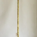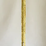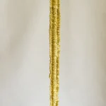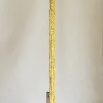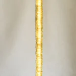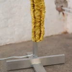 Knock-off-Neon by Ebba Lindgren is a led-tube dressed in butter yellow silk, with a sleek aluminum base and a secret heart. It mimics the colorful light of neon signs, but with a softer glow and touch. The industrial aluminum profiles contrast well with the ruched silk. Turned off, the folds in the silk create a lot of depth. The shade and the shiny highlights give it a compelling structure. Turned on it emits a warm yellow glow. It’s a very tactile and sensual lamp, both turned on and turned off.