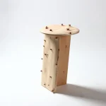 This project highlights the quality of a wood knot, the character of which is often treated as a defect and neutralized in industrial processing. By chiseling down 12mm from a flat surface and chiseling out the knots, its three-dimensionality and texture are enhanced and its unique materiality become palpable to the casual viewer. The surface can now reveal more secrets and help the user imagine what this material once looked like in its natural state.