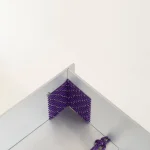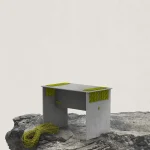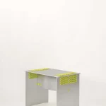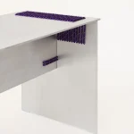 The stool combines laser-cut aluminium with precisely placed openings that guide the rope, ensuring both structural stability and a refined, modern aesthetic.