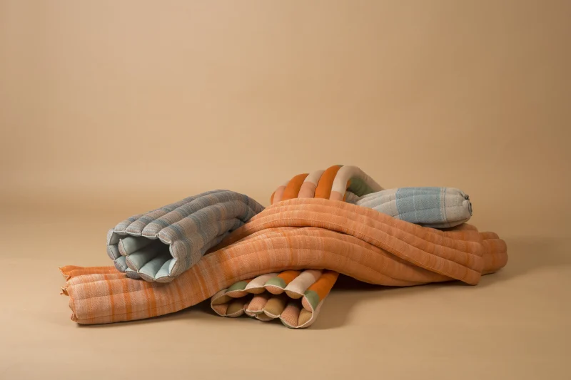 Knotting Knitting is a modular textile piece that can be reshaped to seat, sleep, read, cover up or lie down. It’s made to adapt actively to your body and find any kind of comfort on the floor with a warm touch.