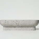 Made from Repen stone, a limestone from the Karst region between Italy and Slovenia. Its pattern, formed over millions of years, contains fragments of shells, microorganisms, and corals.