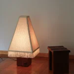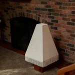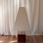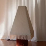 This lamp is a reference to Bulgarian costumes that are worn whilst performing traditional rituals to fend off evil spirits. Combining this with the warmth and charm of the art deco fringed lamps to serve as a playful expression of the classic floor lamp. It shares an ambient glow with an inbuilt timber knobbed dimmer.
