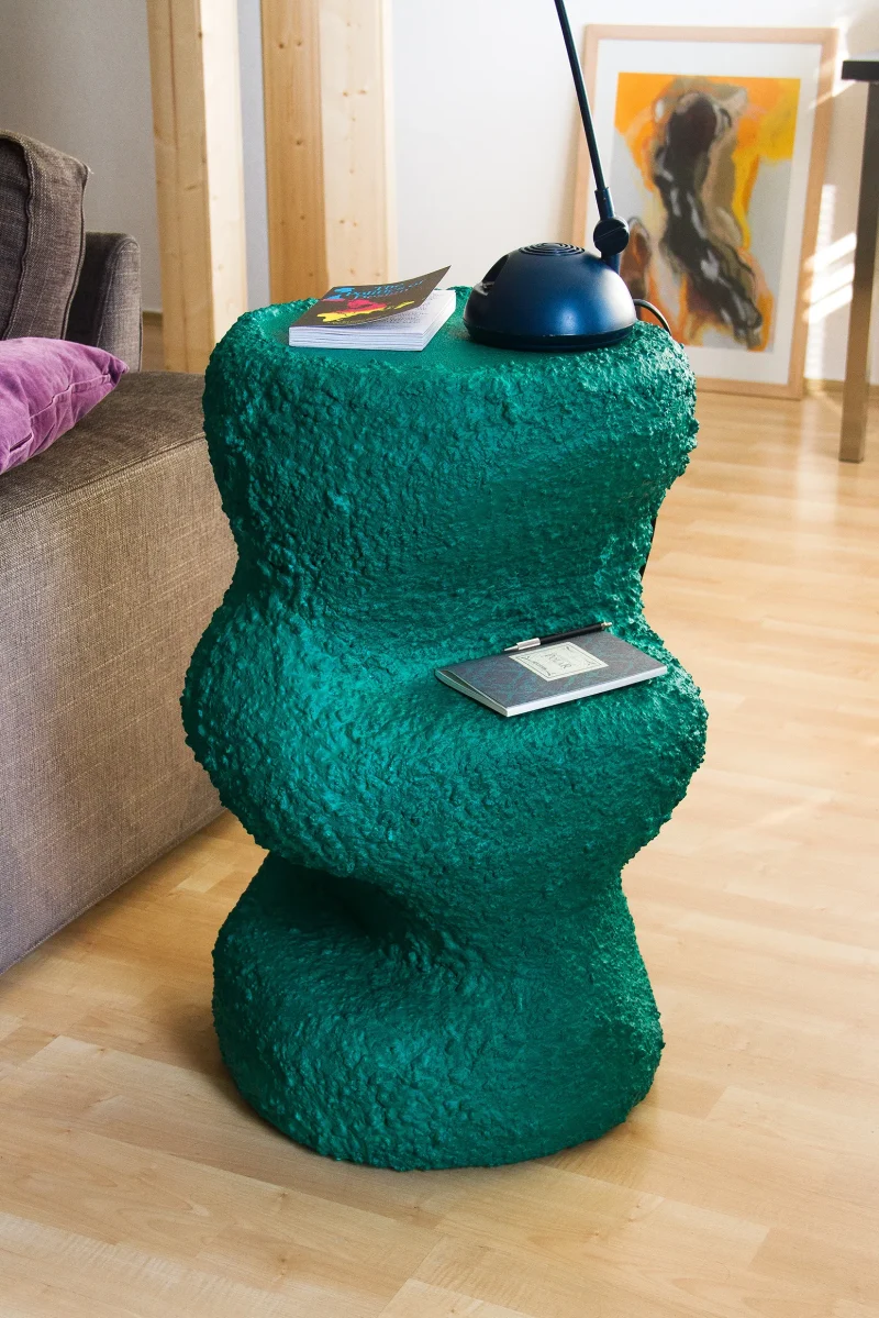 The object is part of a larger research that Tellurico Design Studio has been developing for a few years, which is about how to apply traditional crafts in contemporary design. In particular, the “L-Side Table” was created by re-proposing the ancient technique of ”Stucco” where levels on levels of S.C.M. (Special Composite Material) are applied on a primary volume, to create a solid and functional object.