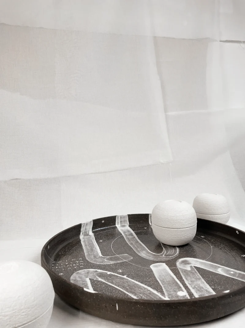 The shapes are inspired by ancestral objects, like laundry baskets and food conservation jars, reinterpreted with a contemporary twist.