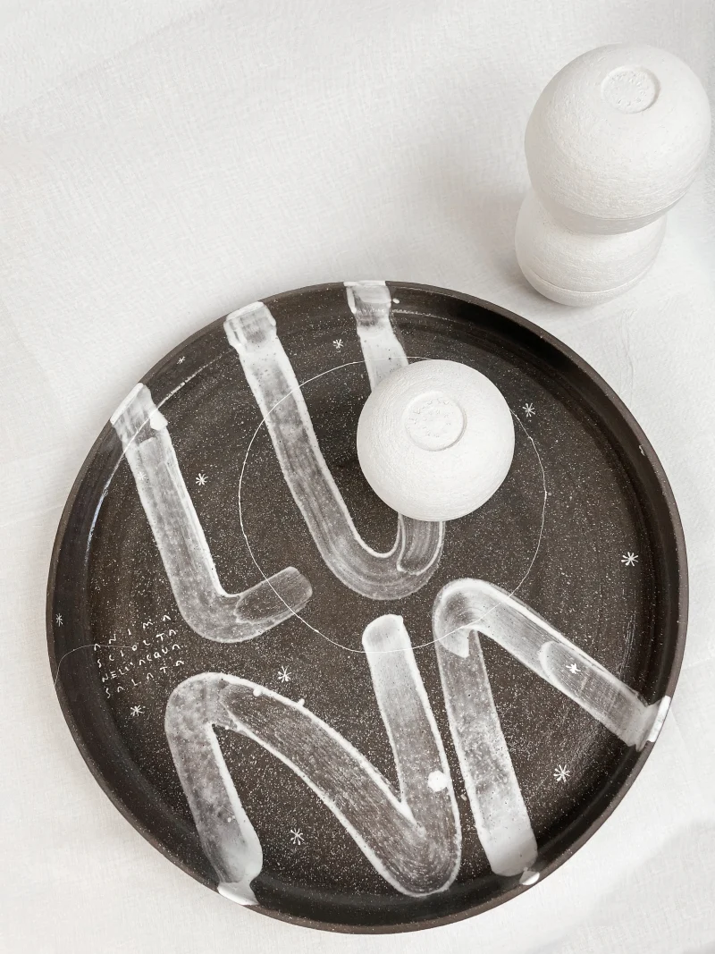 Each piece features unique characteristics, given by the craftsmanship and by the decorations that will differ from piece to piece, while maintaining a unity of language and figurative style.