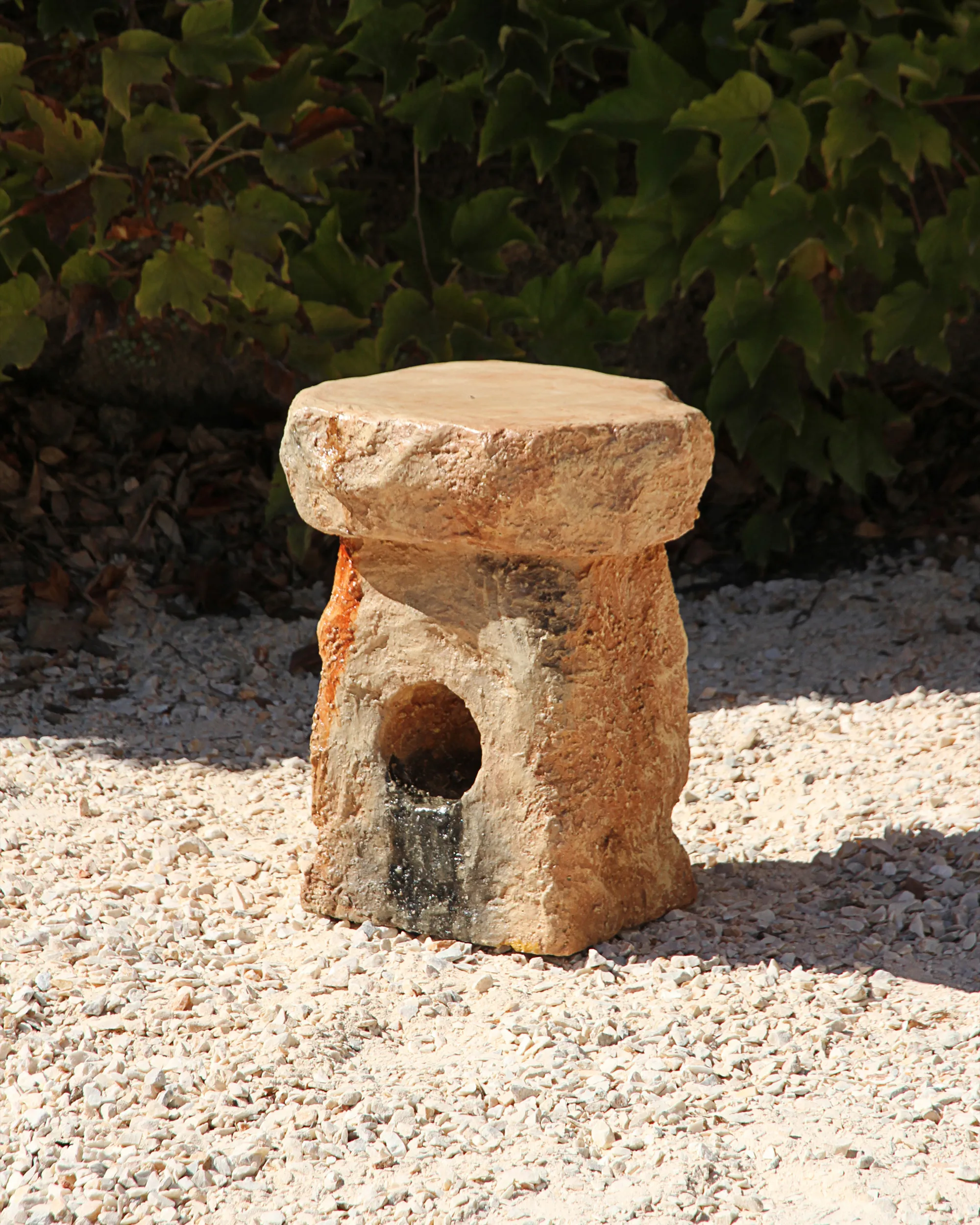 This table/stool was sculpted and painted by the artist, using a blend of modern and period-accurate techniques.