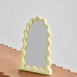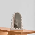 This mini mirror is a captivating rendition of the iconic full body “La Celebración” mirror, drawing inspiration from the world of unconventional and sensual kinetic forms. Crafted with meticulous attention to detail, it is constructed from fiberglass and finished with a semi-matte gel coat color that exudes sophistication. Each piece is lovingly handmade in Mexico, adding a touch of artisanal charm to your space.