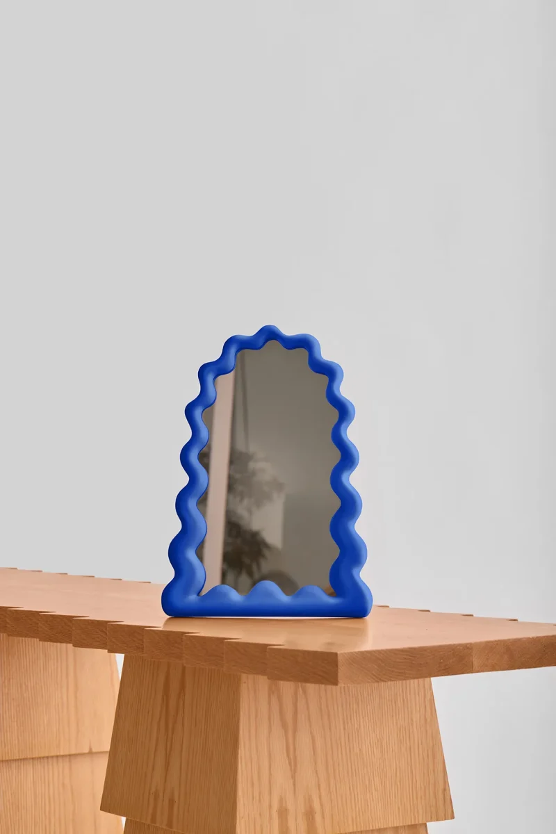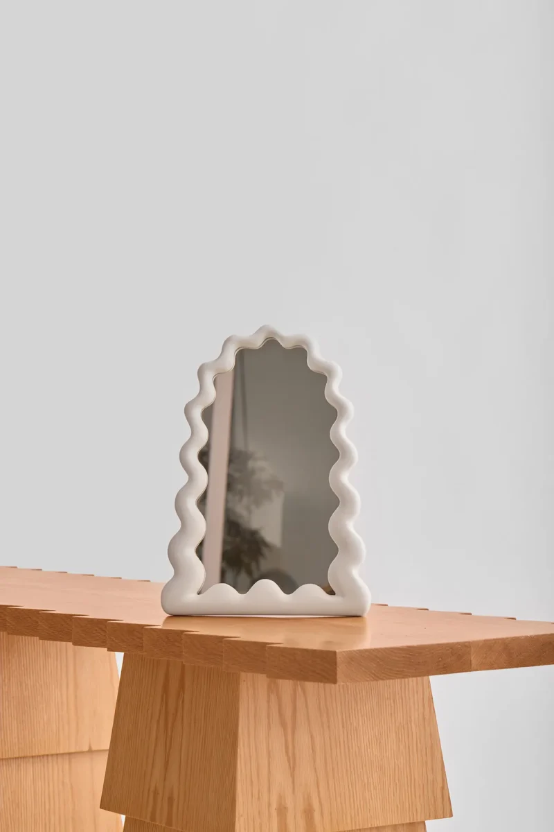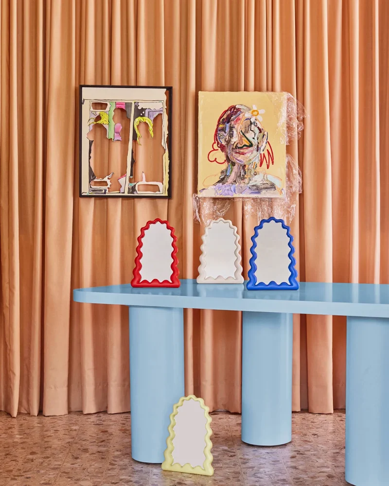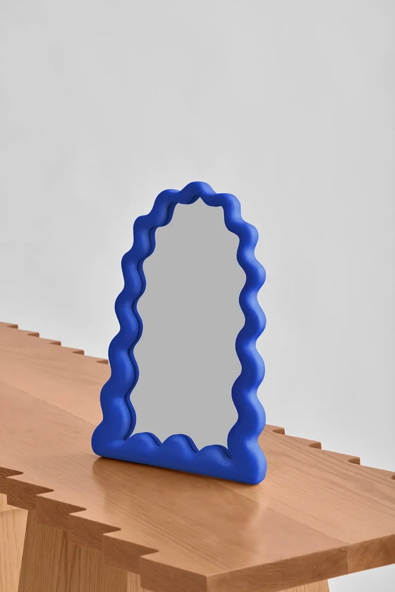 This mini mirror is a captivating rendition of the iconic full body “La Celebración” mirror, drawing inspiration from the world of unconventional and sensual kinetic forms. Crafted with meticulous attention to detail, it is constructed from fiberglass and finished with a semi-matte gel coat color that exudes sophistication. Each piece is lovingly handmade in Mexico, adding a touch of artisanal charm to your space.