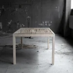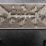Benjamin Nordsmark created the Labyrinth Table to show how a well-known object like a table can be given an extra dimension by creating a small universe inside it. The labyrinth consists of several walls under a sheet of diamond glass, and inside of it, six characteristic figures can be moved around by handles underneath it. Most people possibly remember from childhood how they used to play with miniature figures in a small universe similar to the real world. And these nostalgic feelings are the ones that the table should generate in people’s minds and encourage them to explore and go deeper into the story of the labyrinth. The table was built up with a central core in steel to make it strong enough to last for decades and was later covered with 5 mm. of massive maple wood. A nice thing about this detail is that the handles stick to all the surfaces on the table because of the magnetism.