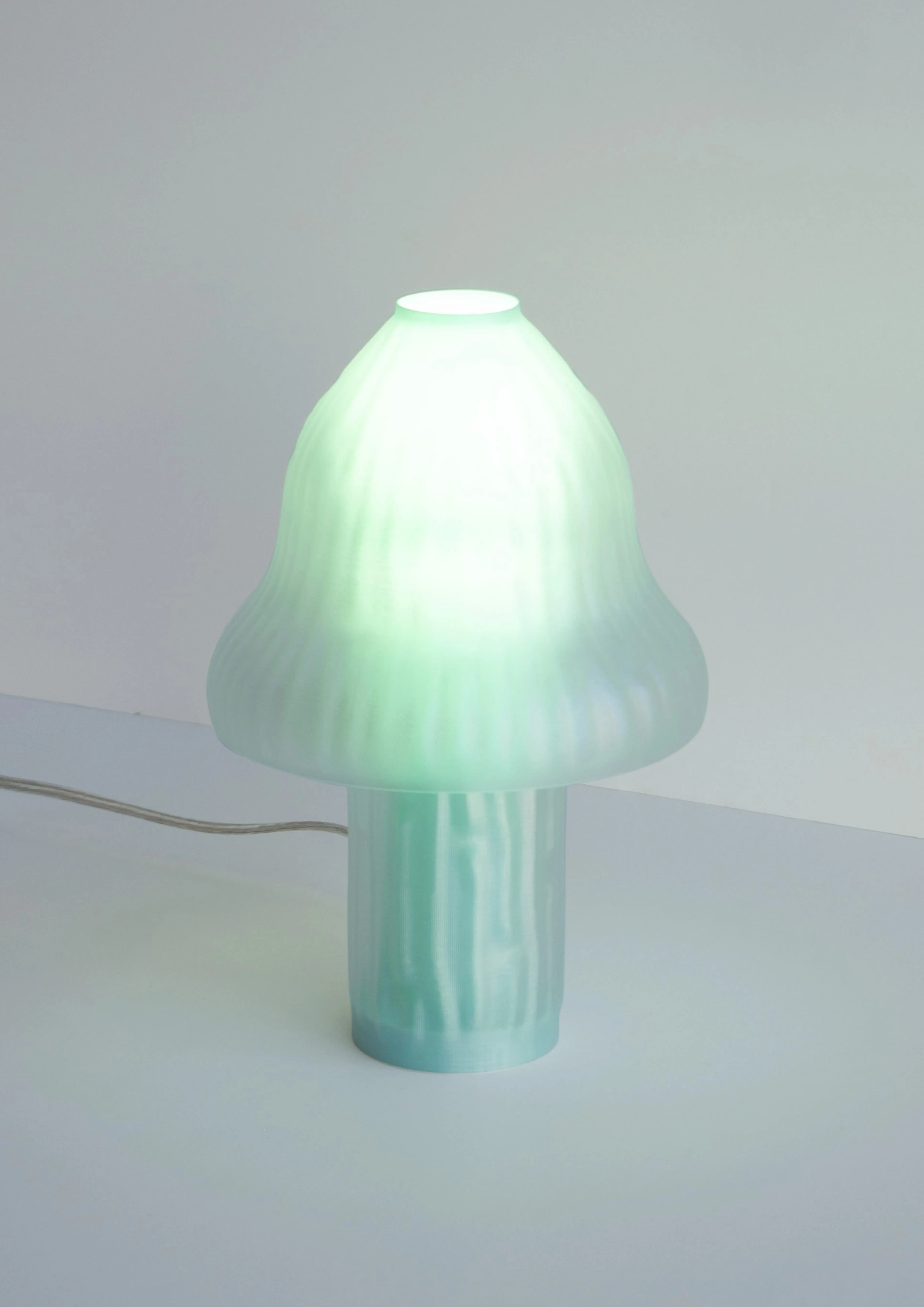 Lampamodelé is a table lamp, digitally sculpted and 3D printed. The volumes are modeled using an interface that allows surfaces to be modeled virtually, generating a file for printing. Thanks to this shaping process combining sculpture and technology, digital textures are embodied in the lamp’s chromatic and transparent surfaces.