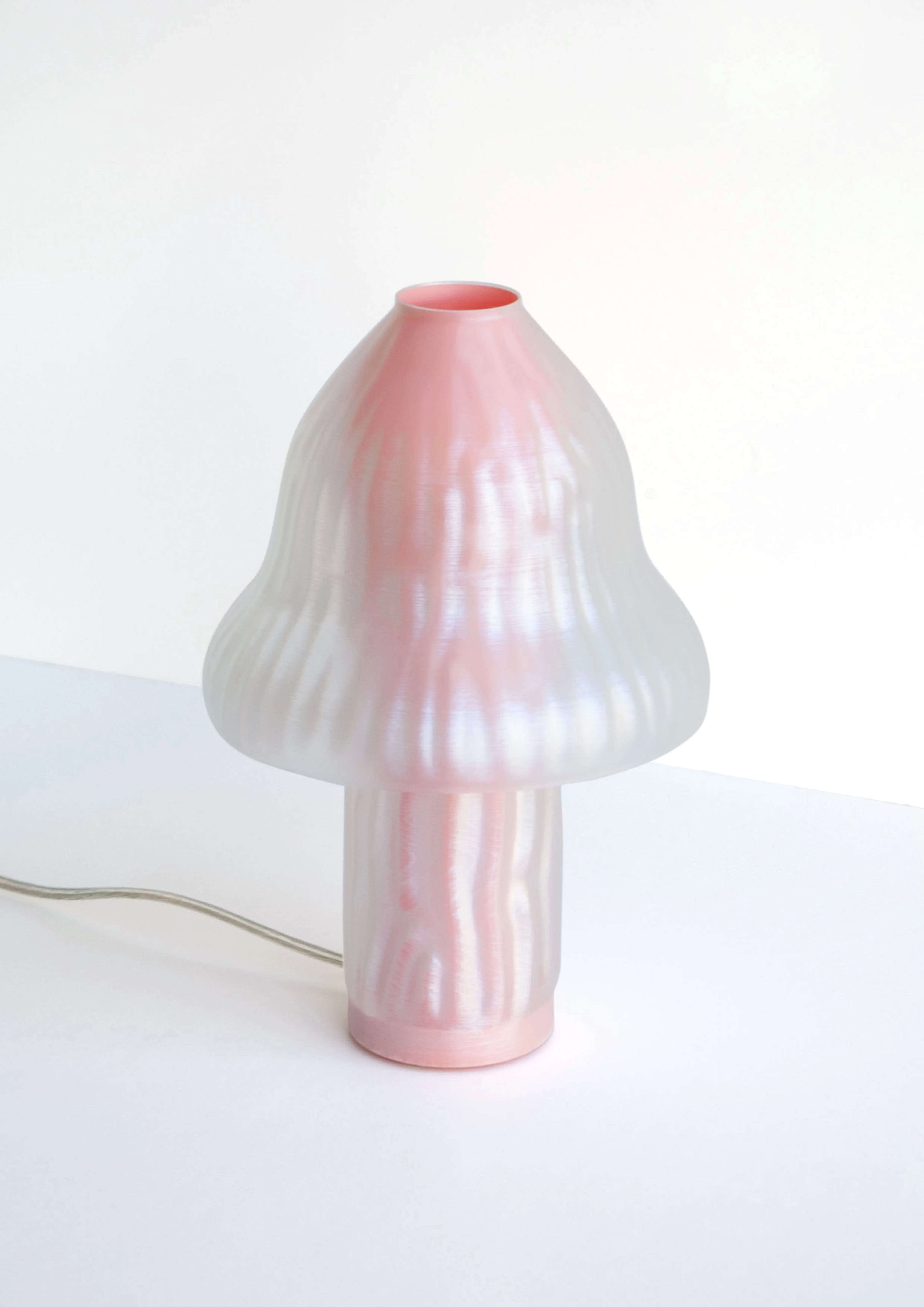 Lampamodelé is a table lamp, digitally sculpted and 3D printed. The volumes are modeled using an interface that allows surfaces to be modeled virtually, generating a file for printing. Thanks to this shaping process combining sculpture and technology, digital textures are embodied in the lamp’s chromatic and transparent surfaces.