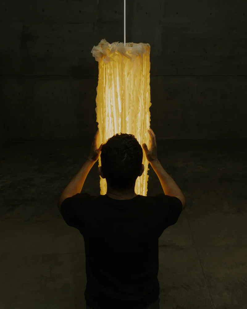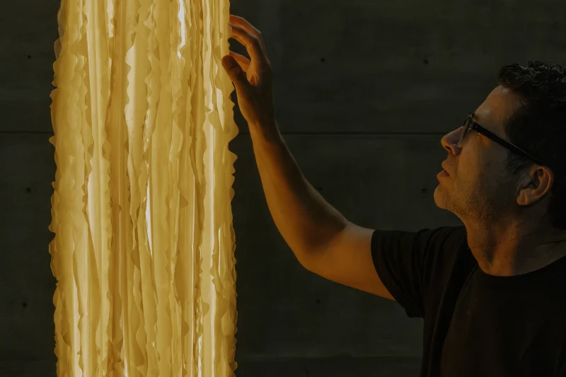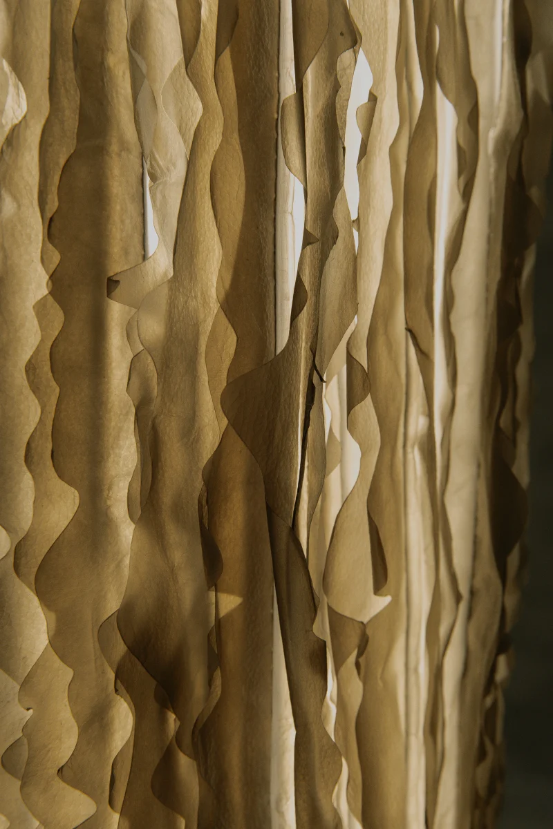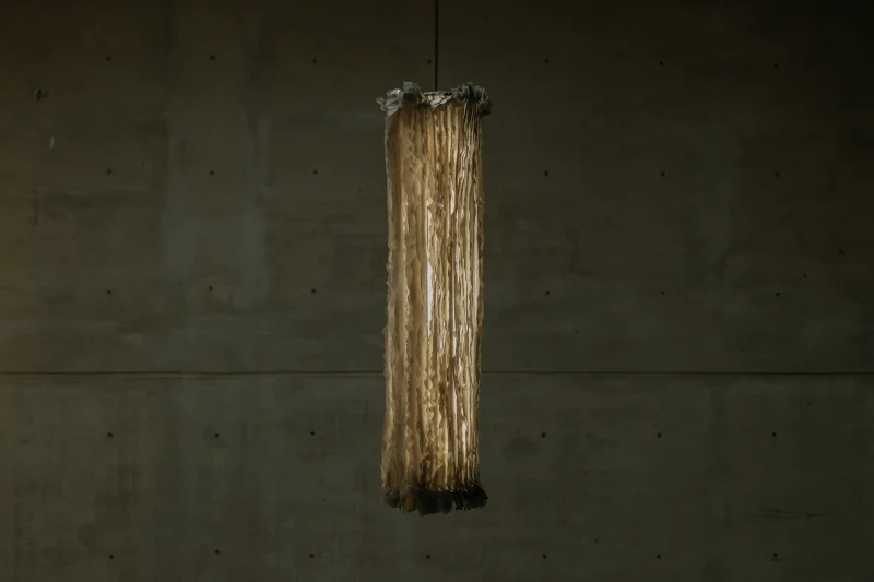 Hand-crafted from five sheets of cultivated bacterial cellulose, each Lapso lamp made with Celium™ is unique, a pioneering collectible where art, biology, and design converge.
