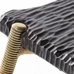 The Lascas chair concept emerged from an exploration of everyday materials, particularly conduit pipes, whose flexible, corrugated form inspired the design. Retaining the inherent curves of the pipes, the base was crafted using cast brass, expertly joined with solid brass bars through a meticulous handmade process.