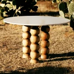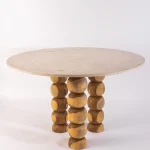 Introducing the Latte Table from Daniel Orozco Studio’s 2024 Collection, a captivating blend of elegance and craftsmanship. This round table features a travertine marble top that exudes timeless sophistication. Its base comprises three totems meticulously turned from solid jabin wood with a natural finish, sourced from the tropical forests of the Yucatán region. The Latte Table is perfect for indoor and covered outdoor use with dimensions of 120 cm in diameter and 75 cm in height. Crafted by skilled artisans, it showcases the pride of Mexican craftsmanship, with the tropical wood and marble sourced from different regions of the country. Elevate your space with the Latte Table, where Mexican heritage perfectly harmonizes contemporary design.