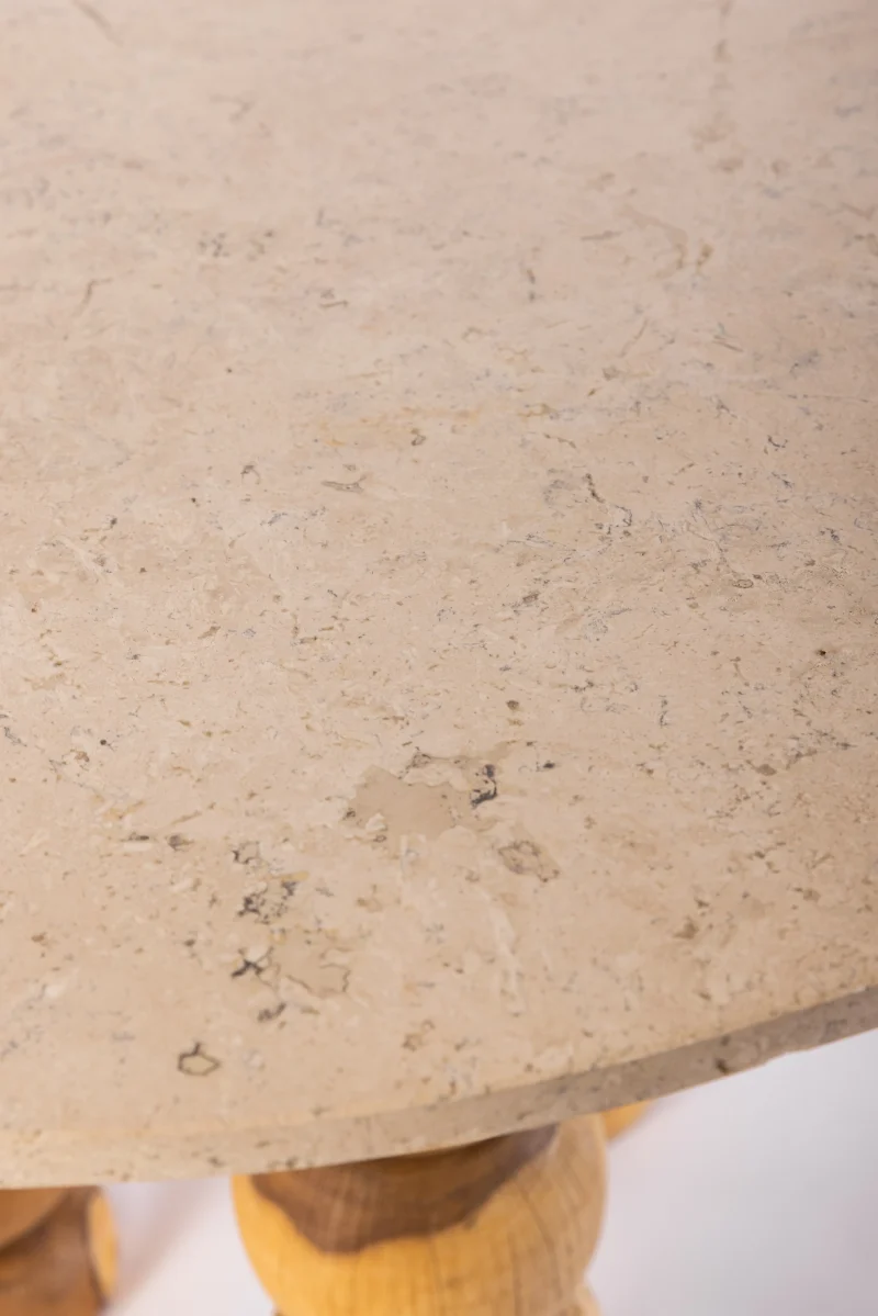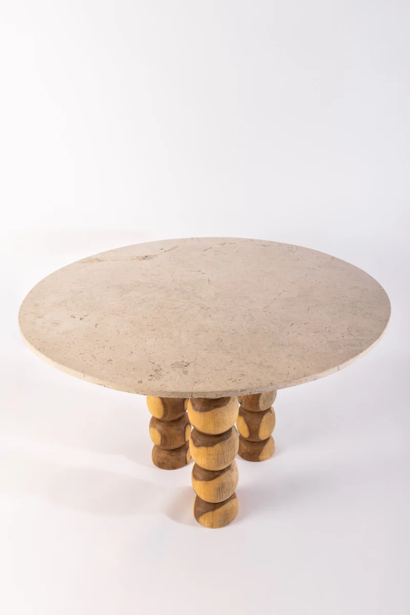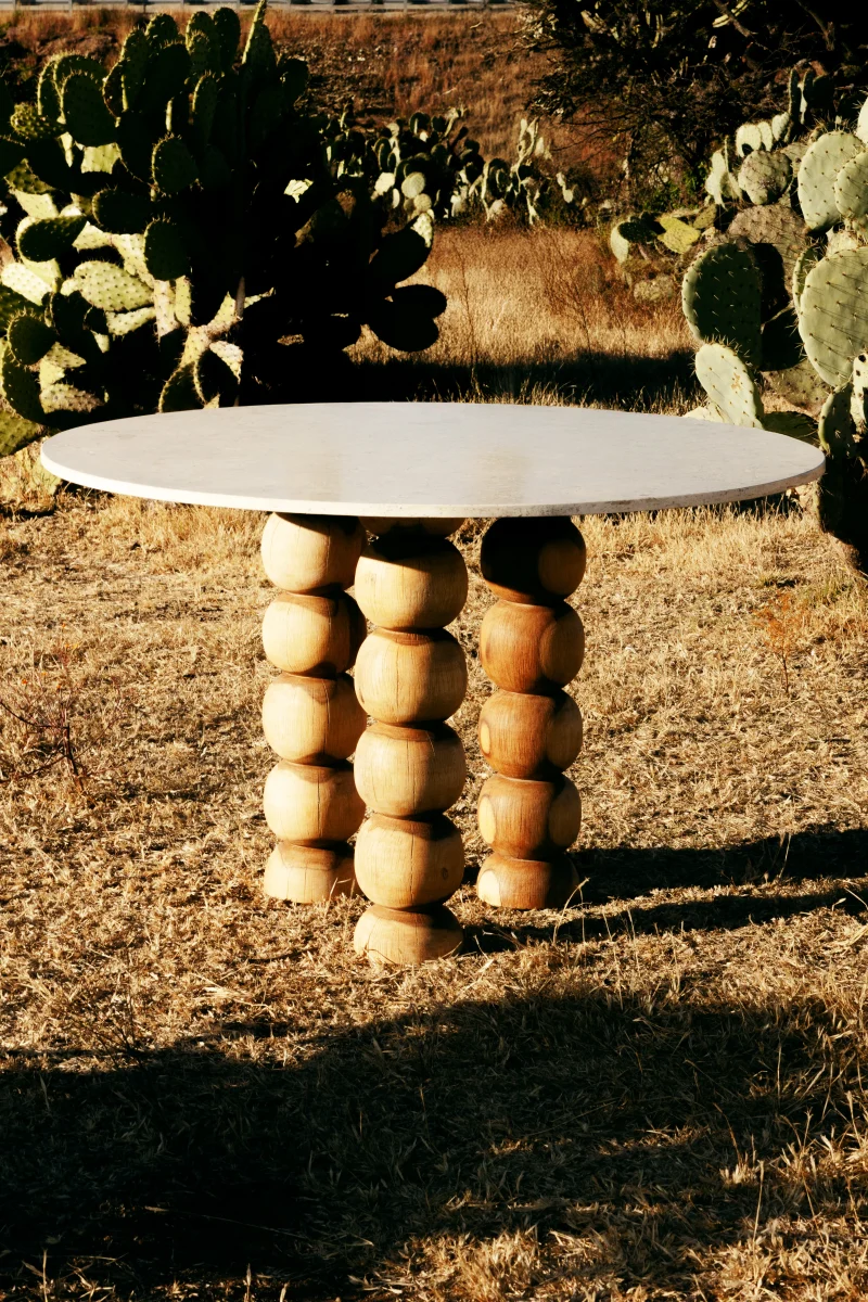 Introducing the Latte Table from Daniel Orozco Studio’s 2024 Collection, a captivating blend of elegance and craftsmanship. This round table features a travertine marble top that exudes timeless sophistication. Its base comprises three totems meticulously turned from solid jabin wood with a natural finish, sourced from the tropical forests of the Yucatán region. The Latte Table is perfect for indoor and covered outdoor use with dimensions of 120 cm in diameter and 75 cm in height. Crafted by skilled artisans, it showcases the pride of Mexican craftsmanship, with the tropical wood and marble sourced from different regions of the country. Elevate your space with the Latte Table, where Mexican heritage perfectly harmonizes contemporary design.