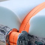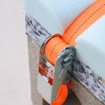 Cette pièce, à la fois sculpture et assise, incarne la rencontre de la robustesse et du confort. La sangle, visible et affirmée, retient l’ensemble avec justesse, tout en mettant en lumière la dualité des matériaux : l’un brut, l’autre doux.