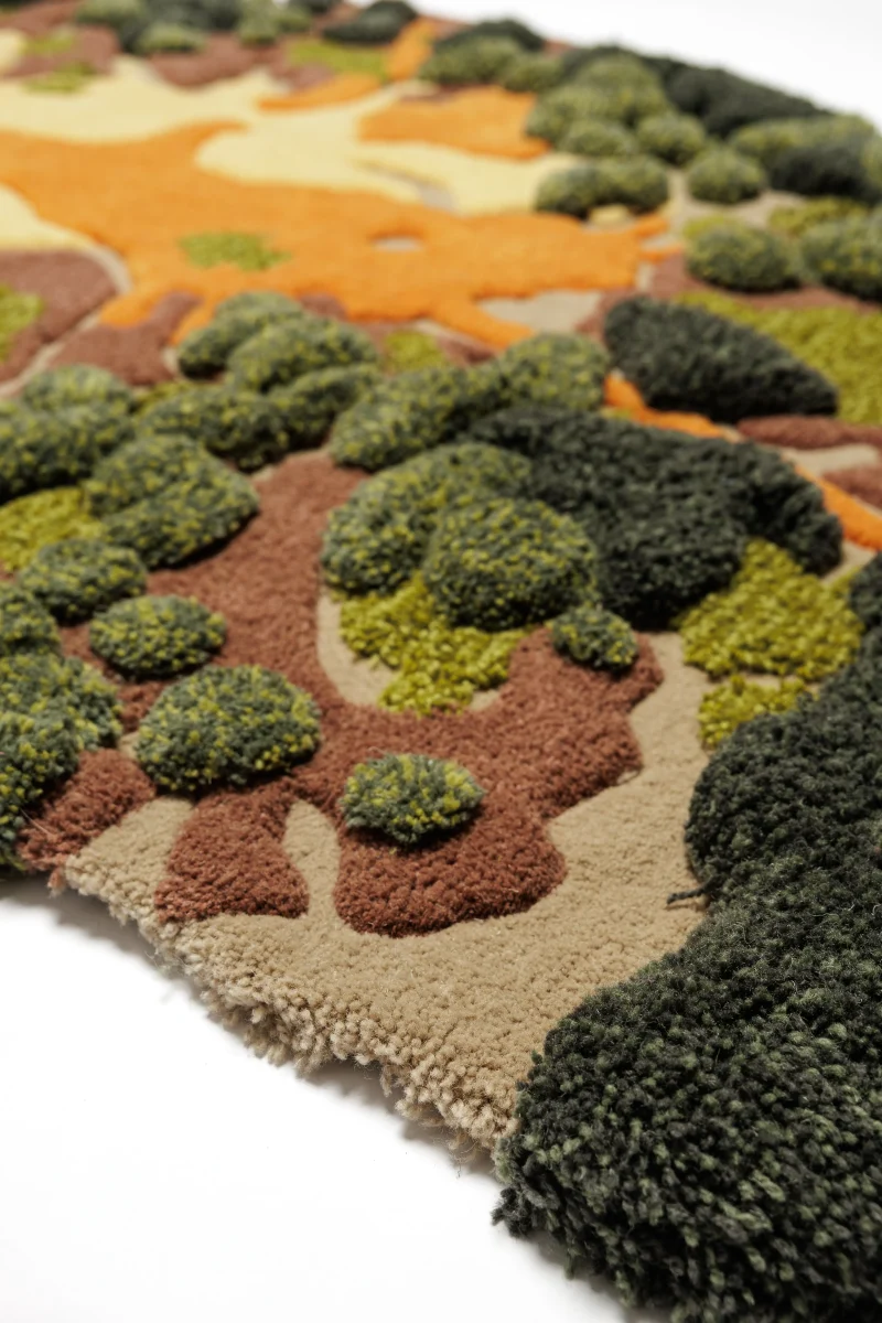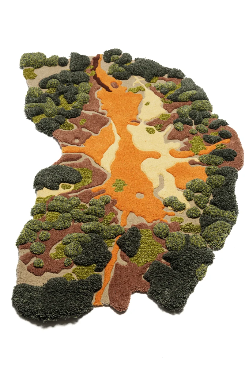 Le Sentier des Ocres rug by Viktorija Kuliavaitė was created with the intention of bringing nature’s beauty into the home but also carry a deep personal connection. Landscape rugs are a testament to the power of nostalgia, inspired by cherished memories of playing with a sibling during my own childhood.