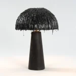 Leaky Lamp I by Pablo Ejarque-González is a grotesque dialogue between ash wood, brass, and bioplastic. Its silhouette evokes the unsettling image of an oil spill—a visual paradox that critiques unsustainable practices while presenting a sustainable material. The clean geometry of a traditional lamp is interrupted by cascading drips—an organic disruption that transforms its identity and demands attention.