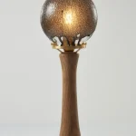 The glass sphere diffuses light like the warm recollection of evening’s first glow, while the organic curves of the oak base invite touch, anchoring the light in a silhouette that is both simple and timeless. This piece is not just a lamp but an evocative sculpture, designed to awaken the senses and illuminate the beauty of contrasts.