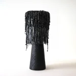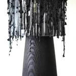 Leaky Lamp III by Pablo Ejarque-González embodies the unpredictable beauty of creation, exploring the interplay of translucency, transformation, and raw materiality. Crafted from graphite biomaterial, glass, and charred ash, the lamp blurs the boundary between the grotesque and the sublime, challenging perceptions of fragility and strength.