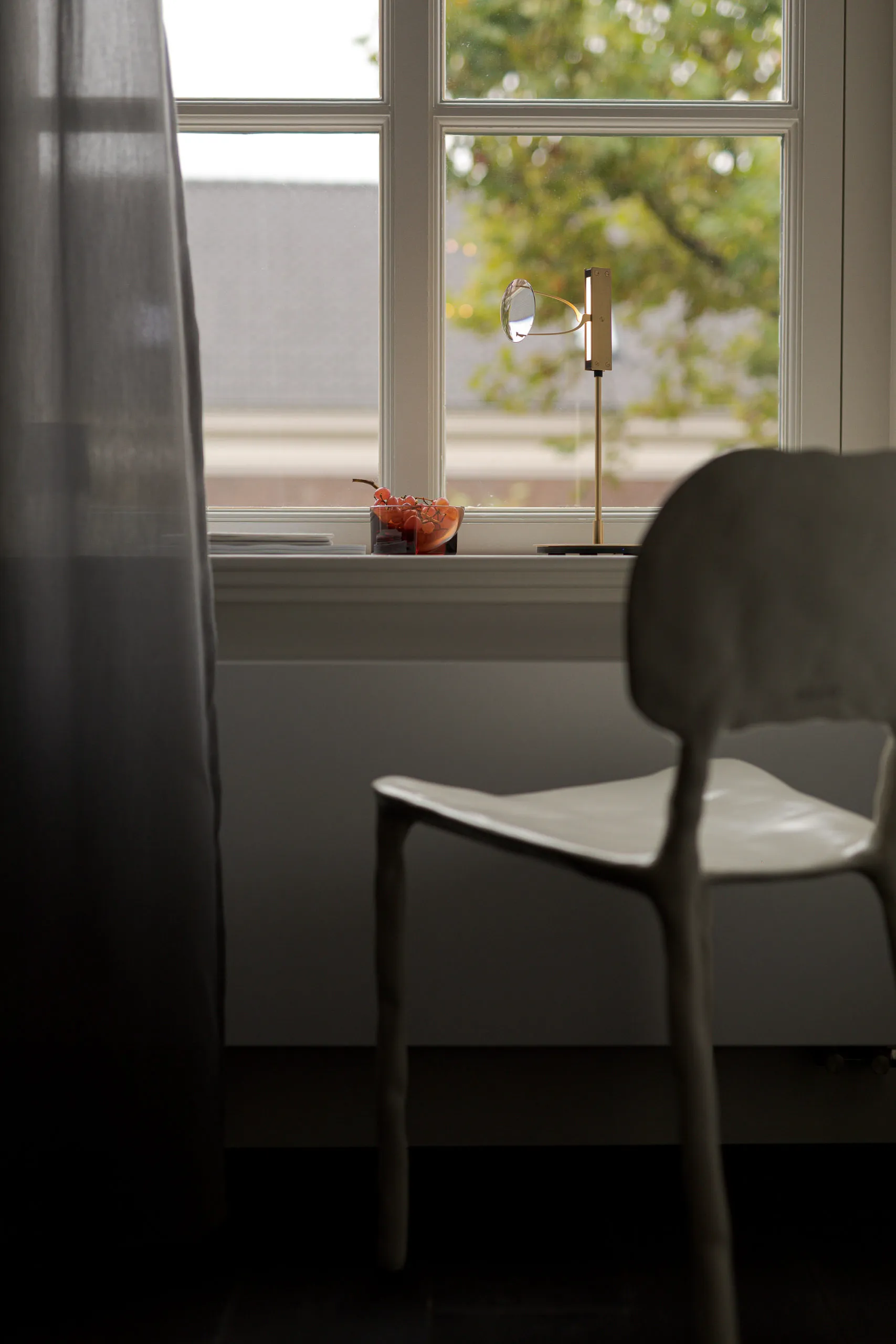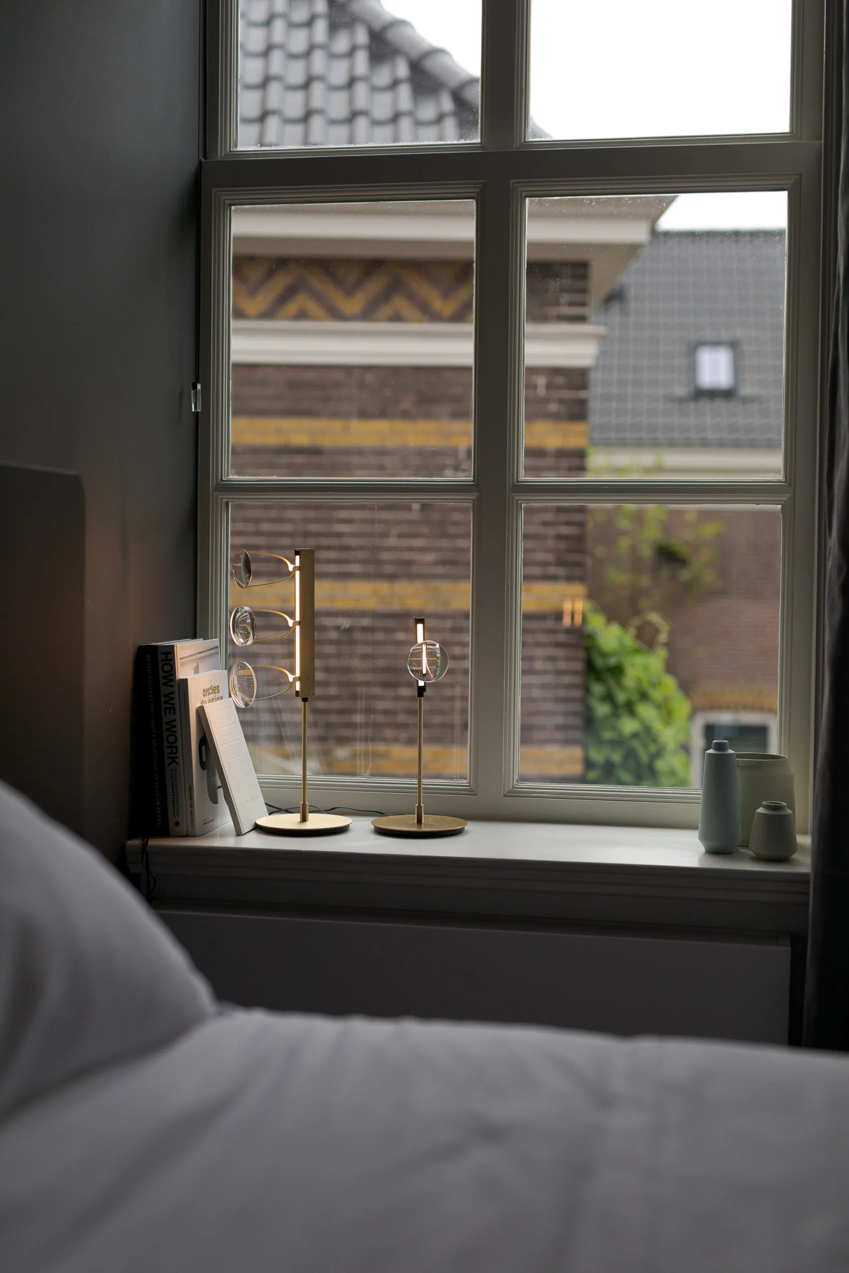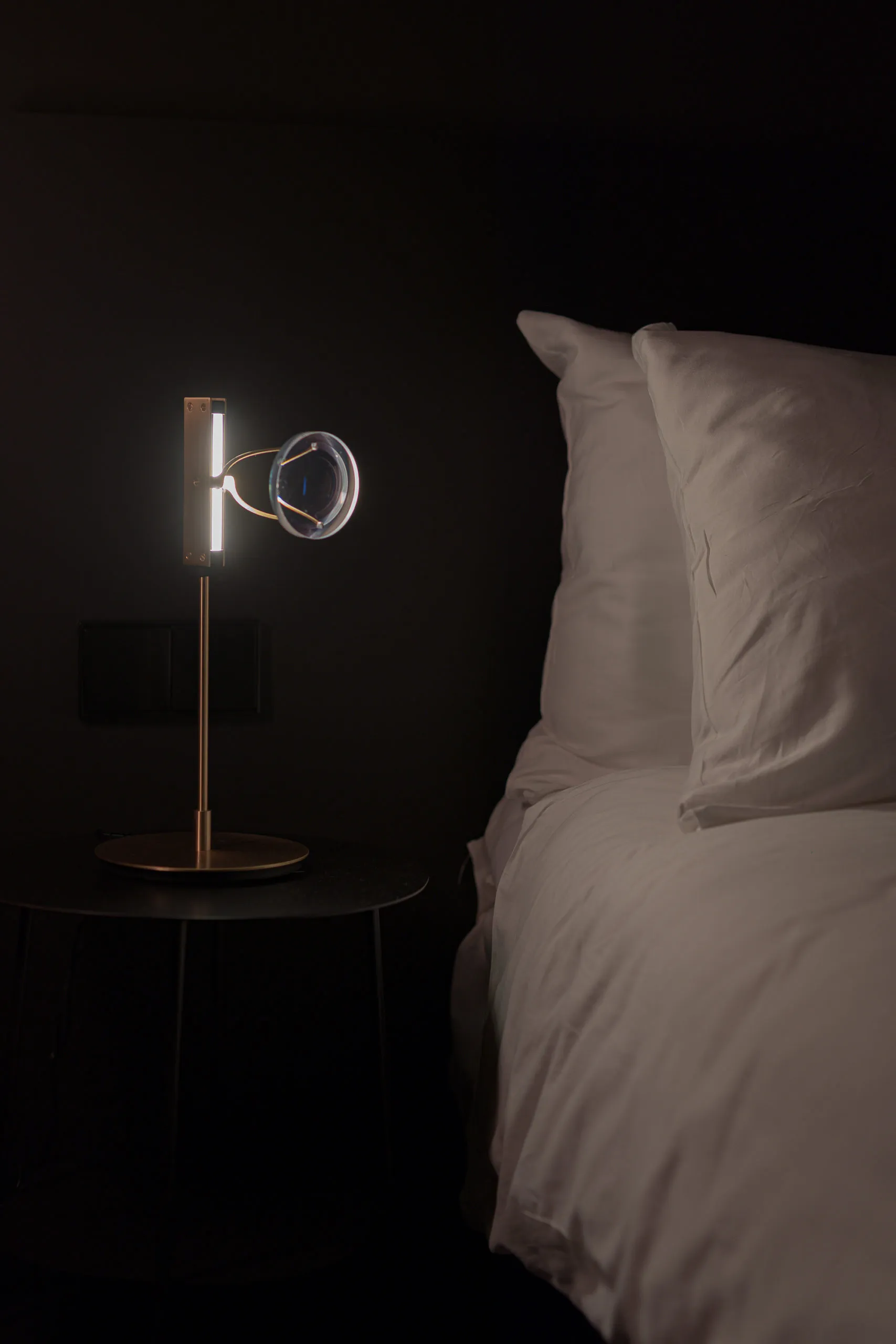 The collection began as a tangible convergence of inspiration, drawing upon Eindhoven’s (NL) history of lighting innovation, New Objectivity architecture, and the detailing of contemporary luxury optics, to form a suspended light-based artwork. The installation has been distilled to a collection of floor and desk lamps suitable for residential spaces.