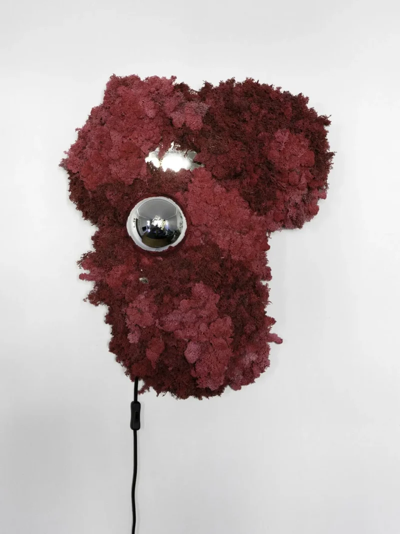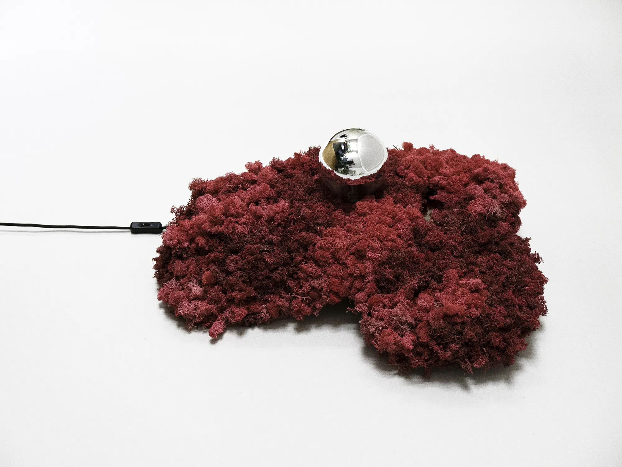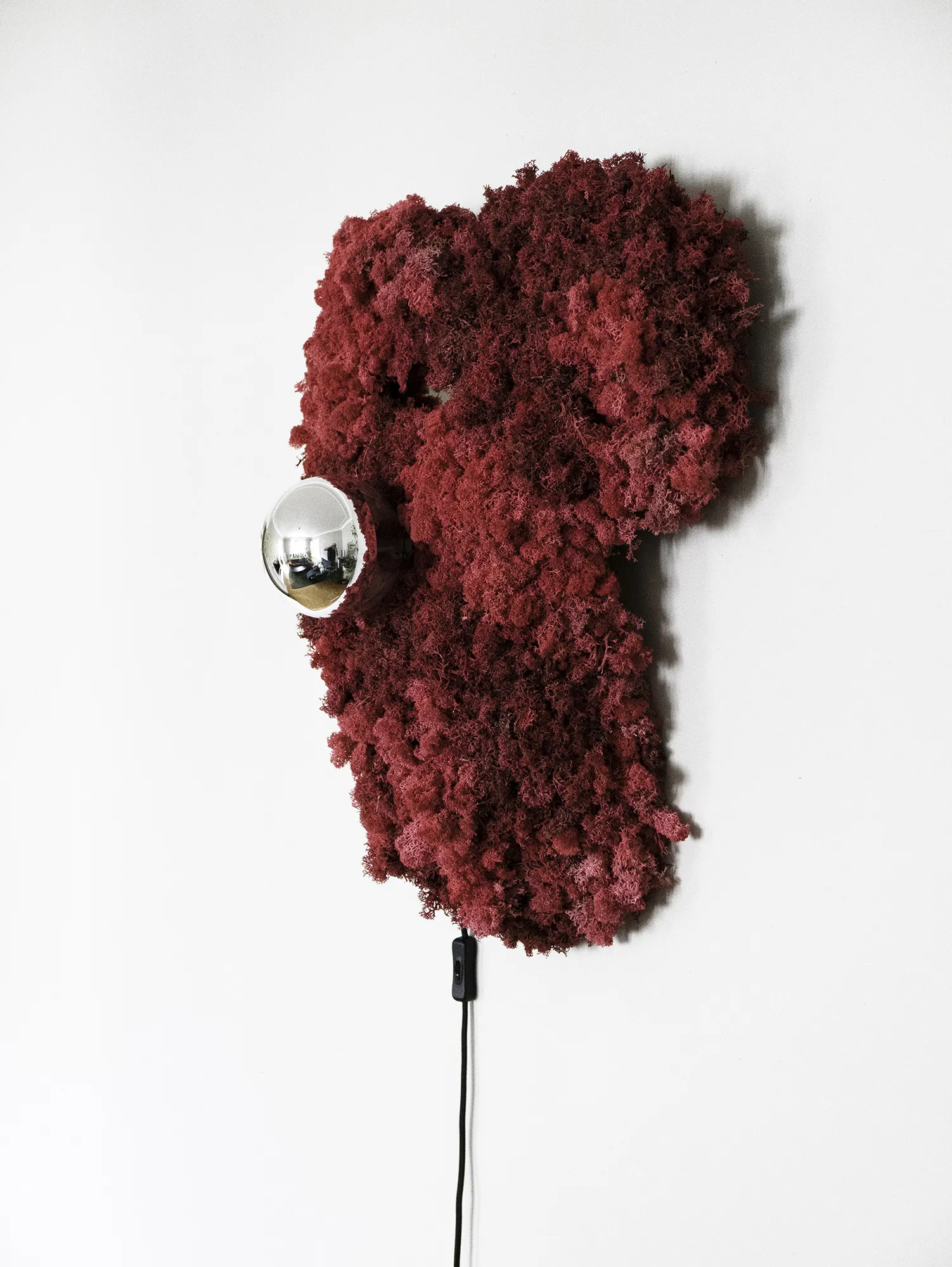 The “Lichen Leftover Light” is part of a project where Louise Hederström investigates and shapes discarded lichen from Nordgröna’s production of sound absorbers. She pushes the boundaries of what is considered junk or product in a series of handmade unique mirrors and now 2022 also a lamp.