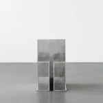 Lille Split Chair is part of “ALUCUTS” (2021 – 2023) furniture series, showcasing simple yet sturdy bolted assemblies of 12mm squared cuts of aluminium plates. The cuts are organized empirically until the piece reveals itself. Craft is kept to its bare minimum: the shiny edges are scarred by the blade, and contrast with the brushed finish; countersunk Allen bolts details underline the connections.
