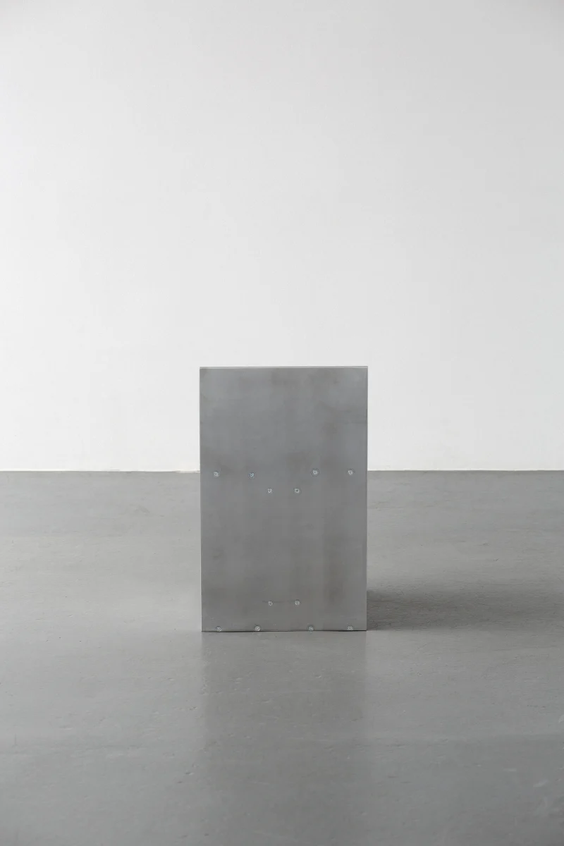 Lille Split Chair is part of “ALUCUTS” (2021 – 2023) furniture series, showcasing simple yet sturdy bolted assemblies of 12mm squared cuts of aluminium plates. The cuts are organized empirically until the piece reveals itself. Craft is kept to its bare minimum: the shiny edges are scarred by the blade, and contrast with the brushed finish; countersunk Allen bolts details underline the connections.
