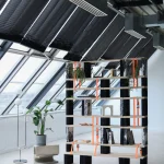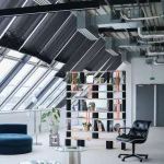 Une bibliothèque modulable, entre souplesse et structure, où le textile se fait pierre et le noir dialogue avec le blanc.