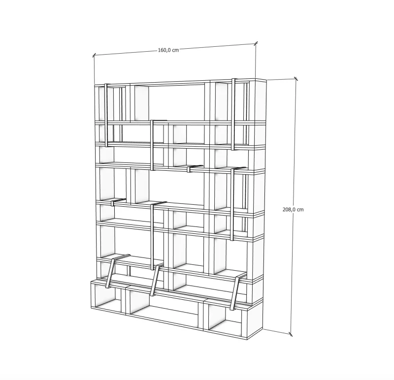 23 modules : A4/A5, verticaux et horizontaux, formats 40 cm et 80 cm, pour une bibliothèque modulable.