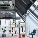 Une bibliothèque modulable, entre souplesse et structure, où le textile se fait pierre et le noir dialogue avec le blanc.