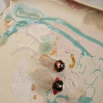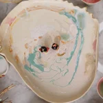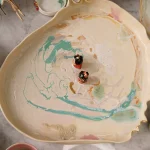 Each piece is lovingly handcrafted by Hania Jneid, carrying within it the spirit of a child’s imagination and the reverence of traditional craftsmanship. The organic shapes, joyful colors, and gold-kissed imperfections speak of a world where laughter meets ceremony, where art and function intertwine at the table.