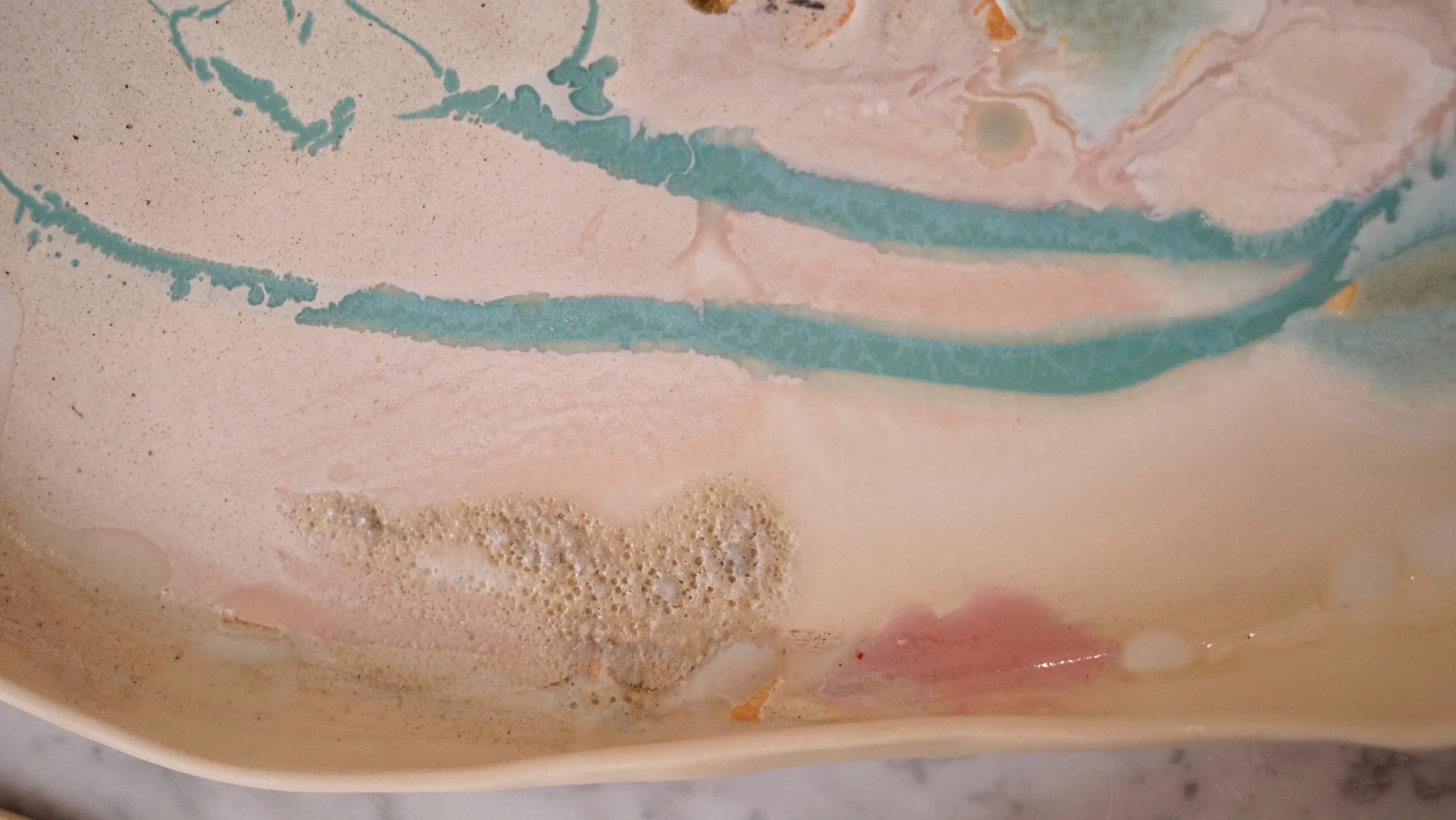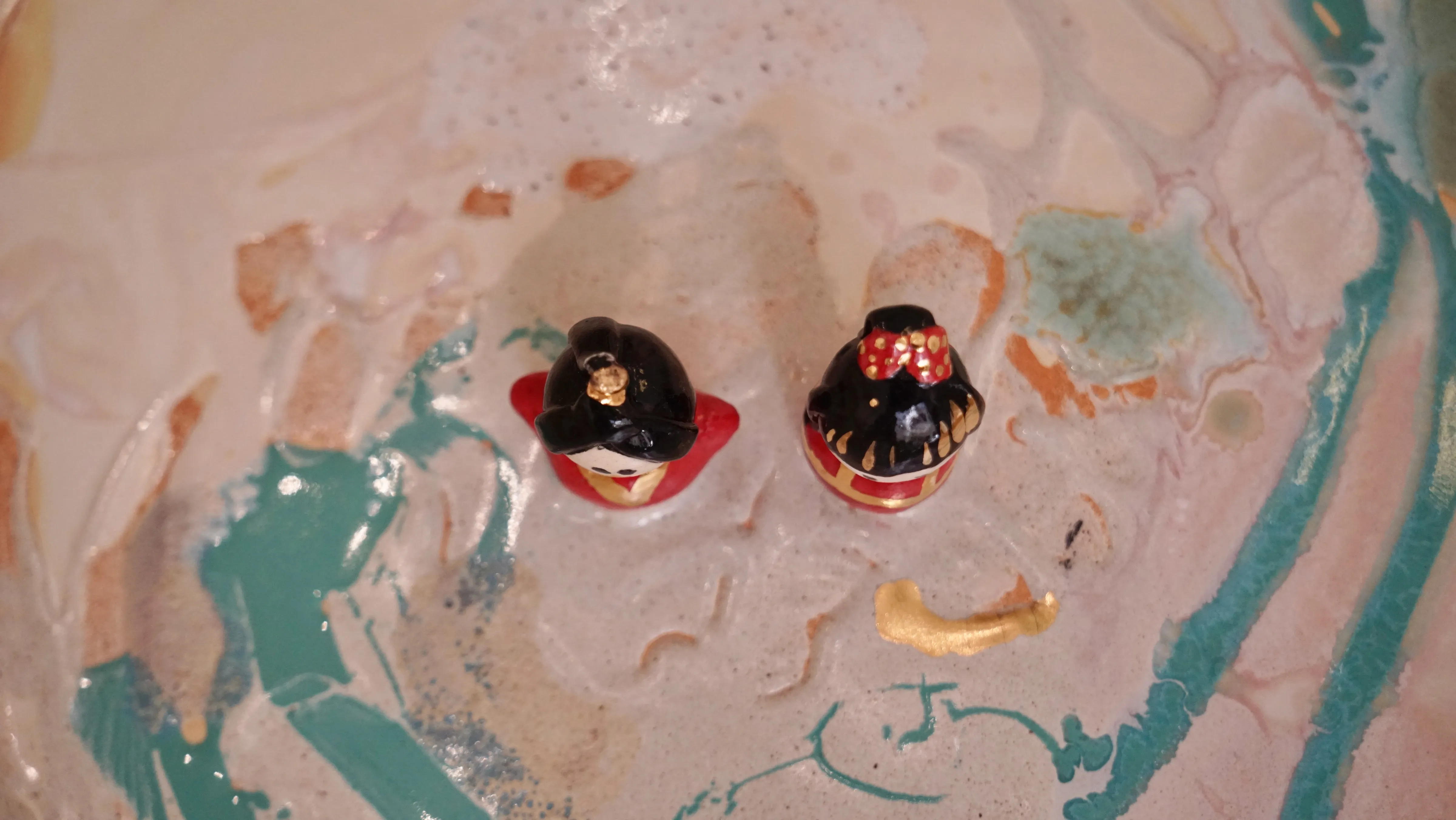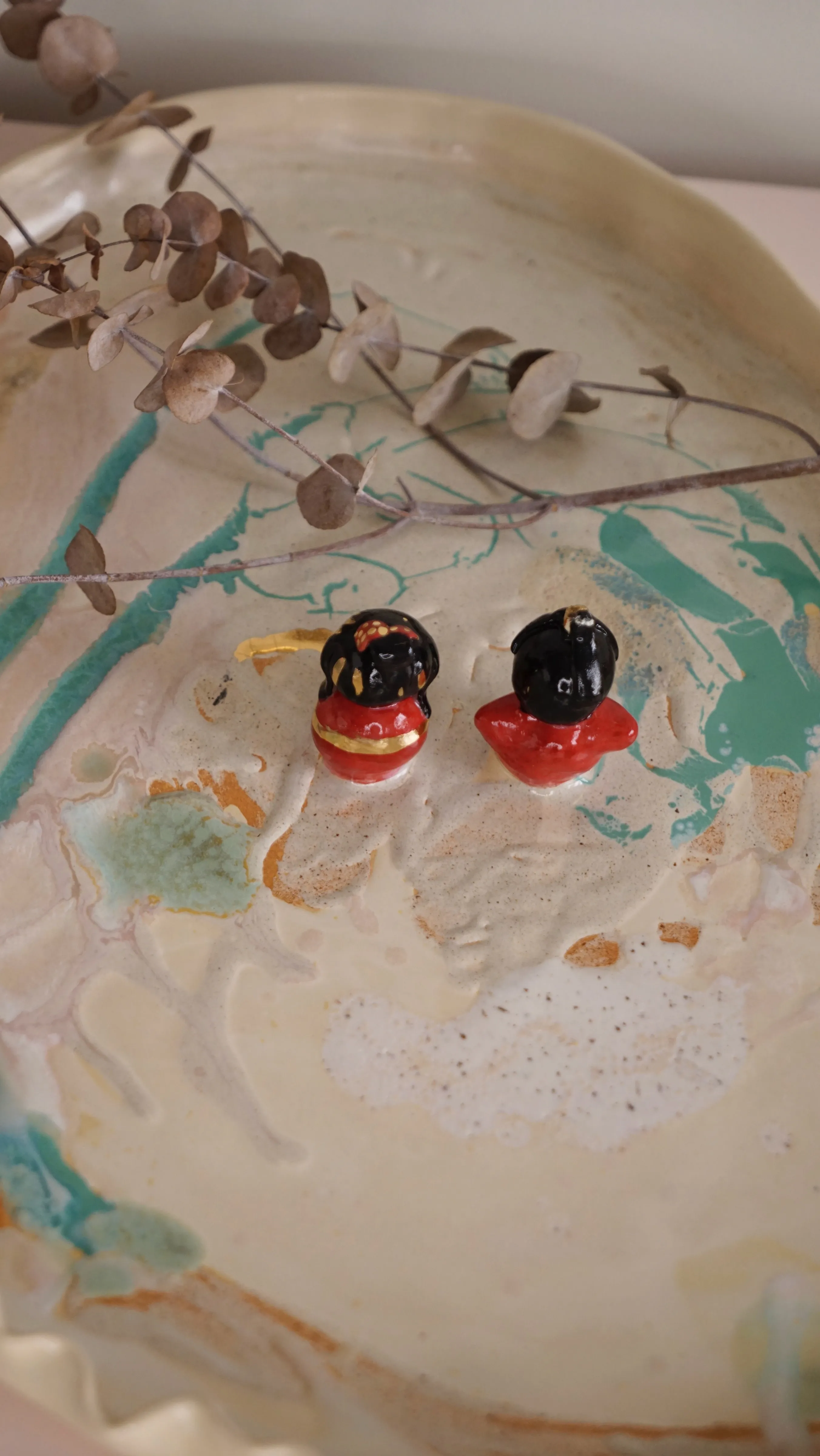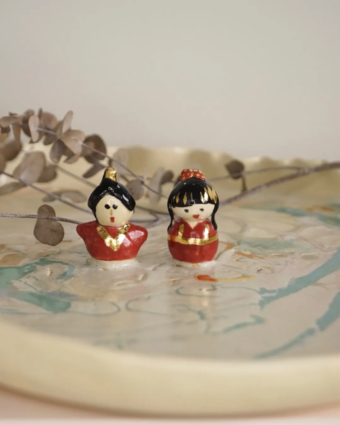 Each piece is lovingly handcrafted by Hania Jneid, carrying within it the spirit of a child’s imagination and the reverence of traditional craftsmanship. The organic shapes, joyful colors, and gold-kissed imperfections speak of a world where laughter meets ceremony, where art and function intertwine at the table.