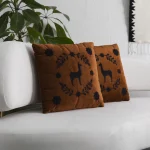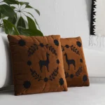Embracing sumptuous luxury, these decorative pillows showcase handcrafted embroidery, handwoven belts, artisanal sheepskin, and hand-stitched leather adorned with accents of aged bronze. For a refined modern twist, the ancient hand-embroidery technique from the Zuleta region—deeply ingrained in Ecuador’s cultural traditions—is reinterpreted in luxurious velvet, departing from the commonplace cotton and natural fibers.