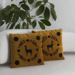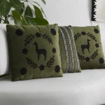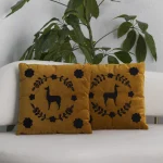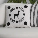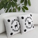 Decorative pillows with hand-embroidered llama motif from Zuleta, Imbabura, and waterproof velvet or upholstery fabric.