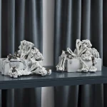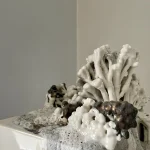 A tableau is a snapshot that holds the entire narrative. The ceramic tableau tells the story of how it became. In that way, it is a stage for a performance that has taken place in the kiln. The result balances between careful calculation and a loss of control. The dynamic shaping is stopped when the heat is switched off, leaving an imprint of the processes that we are intimately defined by – growth, decay, gravity, attraction, and adaption.