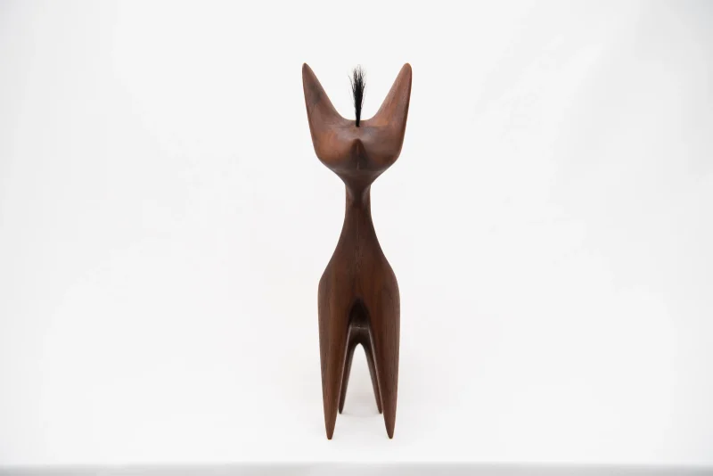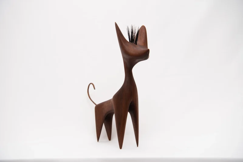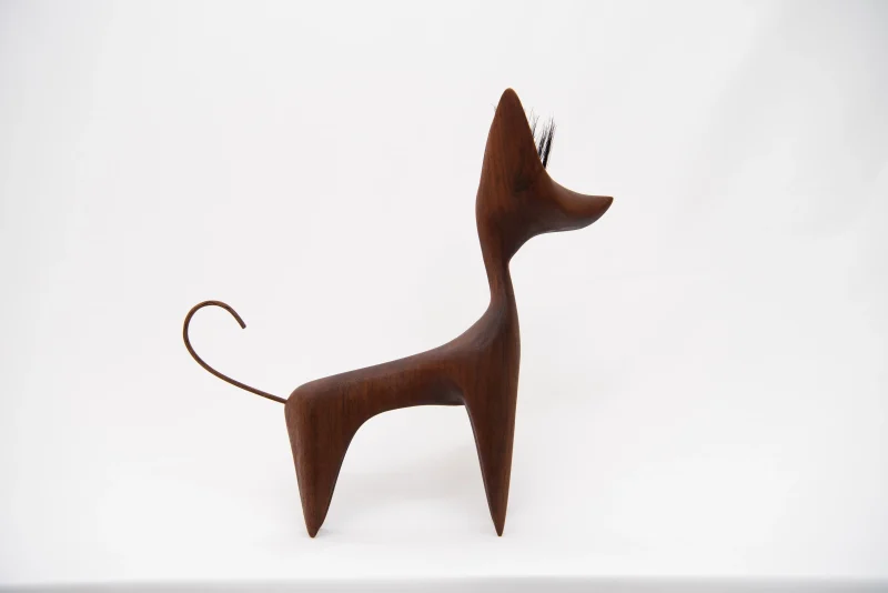 We identify with the Xoloitzcuintli because its beauty lies in its rarity and unusual character compared to the norm for a dog. Therefore, like many historical artists, we decided to continue celebrating this living archaeological gem by embodying its value in a pair of wooden sculptures that symbolize success and prosperity, Lolo and Lola.