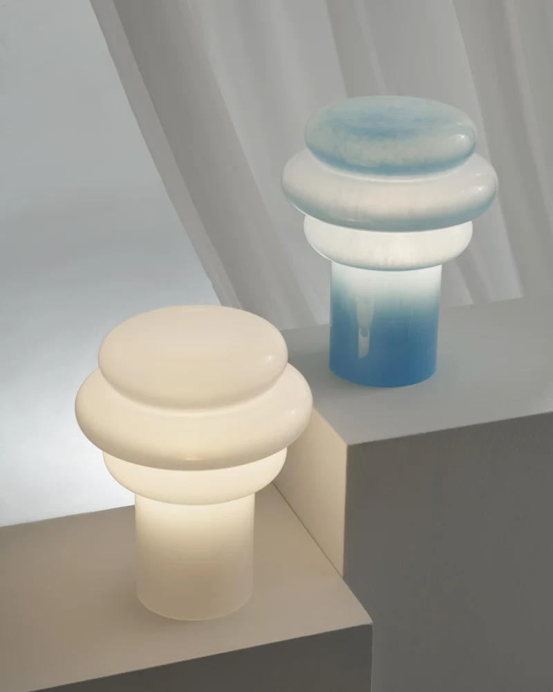 Lolli is a sculptural lighting object by Studio Monsoleil made entirely of glass, expertly crafted through traditional mouth-blown techniques by skilled artisans.