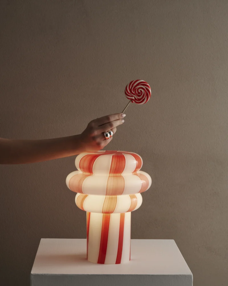 Its candy-inspired silhouette combines soft curves with a bold presence, creating a playful yet elegant statement in any interior.