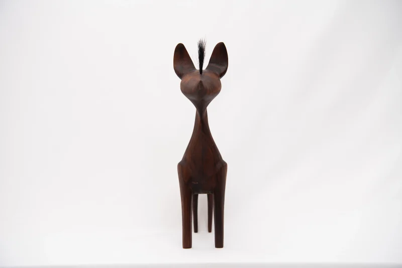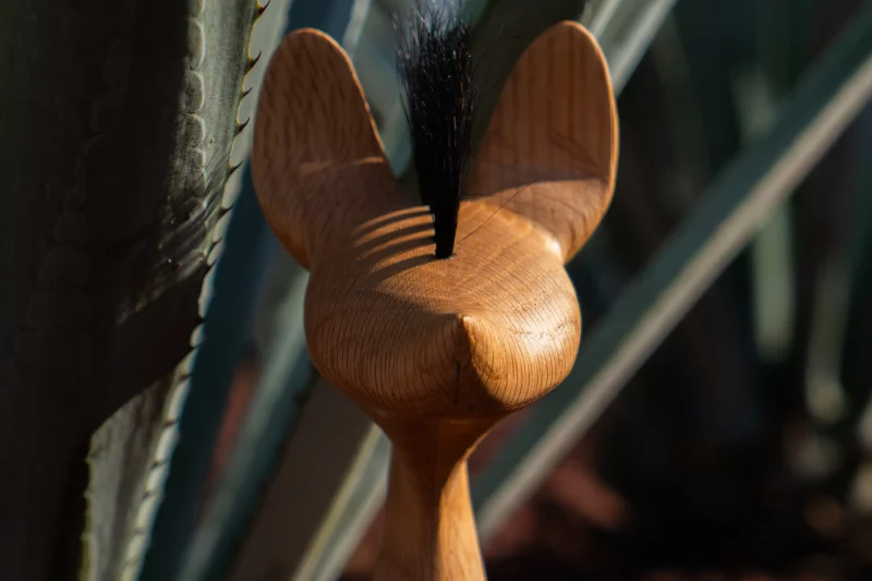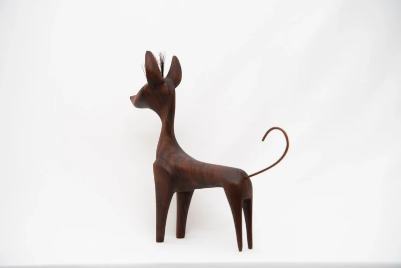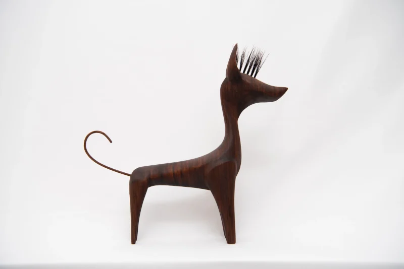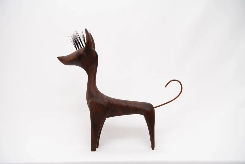 We identify with the Xoloitzcuintli because its beauty lies in its rarity and unusual character compared to the norm for a dog. Therefore, like many historical artists, we decided to continue celebrating this living archaeological gem by embodying its value in a pair of wooden sculptures that symbolize success and prosperity, Lolo and Lola.
