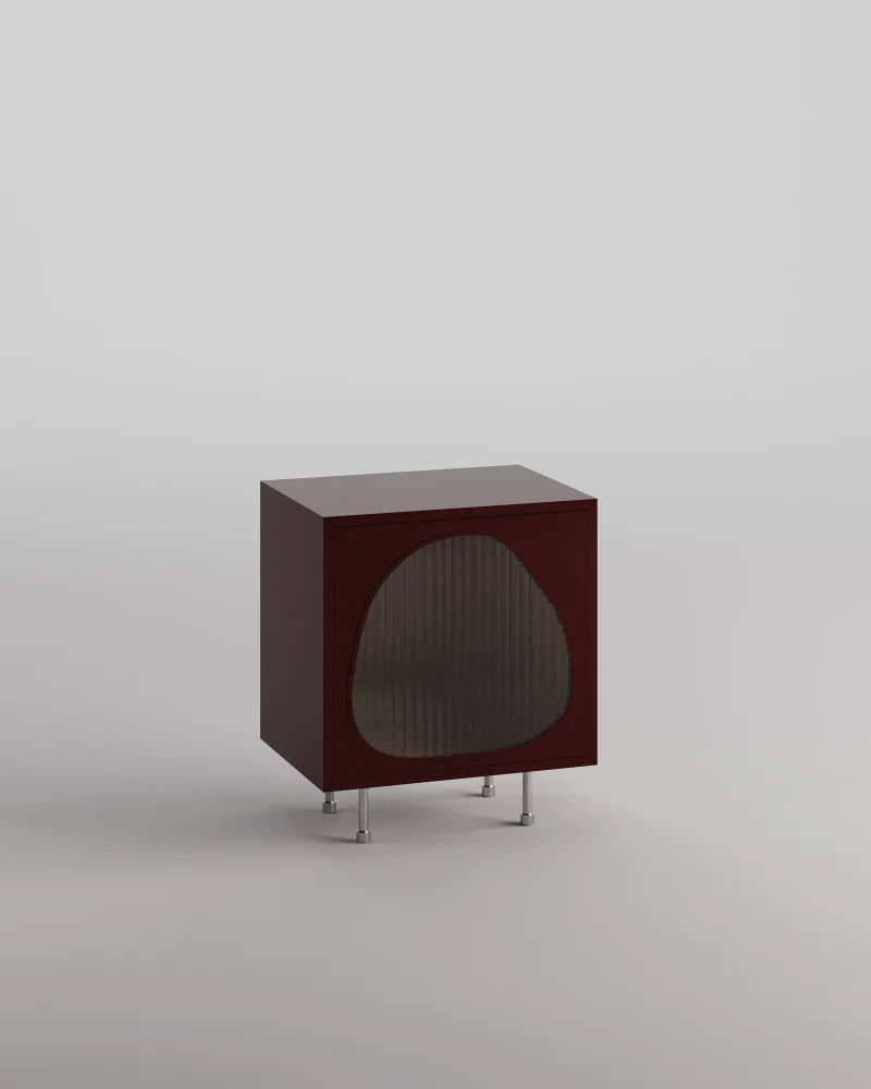The Loop Side Table by Tuğçe Geyik is a harmonious blend of functional storage and modern art, designed to captivate with its unique form and interplay of materials. Inspired by organic shapes and the fluidity of nature, this side table’s softly rounded glass panels offer a gentle, veiled view of the items within, balancing openness with a sense of mystery. The curved, irregular glass shapes create a rhythmic, looping effect that brings a subtle sense of movement to the piece.