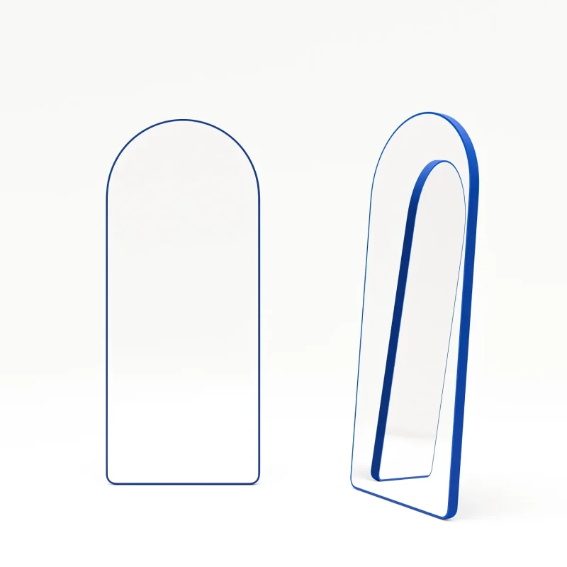 01 model is a classic full-length arched mirror. It has thin contour frame, the color of which you can always choose. The frame of the mirror is monolithic, which allows you to protect the mirror from mechanical damage during transportation or use.