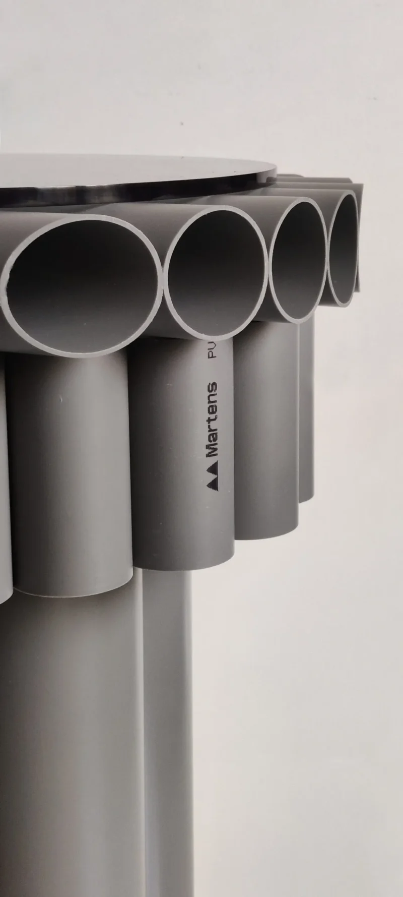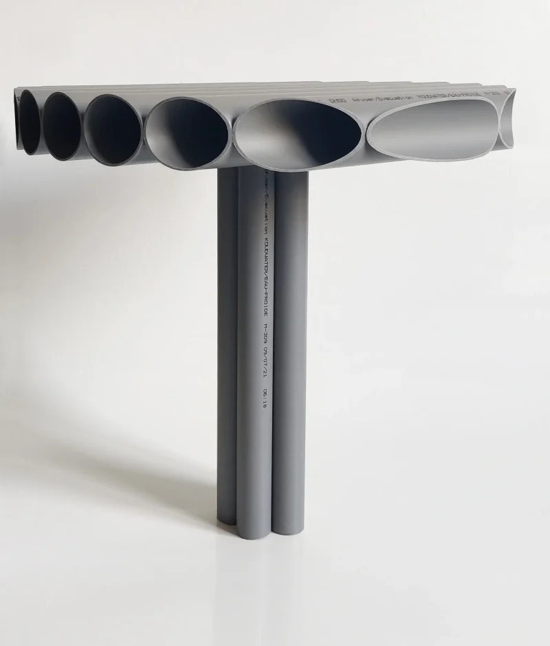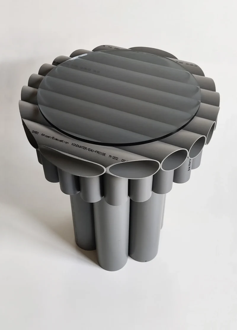Part of the “S.V.P.” collection, this low table “TOTEM” bases its singularity on an aesthetic-fiction where the imaginary and the ideal become uniform to suggest a relative functional work. The use of PVC tubing for the object consists in making the undesirable desirable, in making the insignificant significant to show with irony and poetry the attraction and the erasure of the borders of propriety.