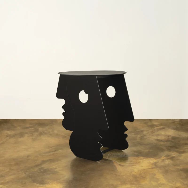 This side table is named after Lucia Moholy, a female Bauhaus photographer who developed photograms, also known as photogenic drawings. Her contributions to the movement were overshadowed in her time, hence, this piece is a homage to all women whose works were underrated. The Lucia side table is inspired by the artwork ‘Laszlo and Lucia’, a photogram where her and her husband’s profiles merge into each other by the use of shadow and light. Made of laser-cut iron, Lucia offers rectangular and spherical tabletop options. It is a delightfully playful object that would excite the eye and the imagination with a touch of eccentricity.