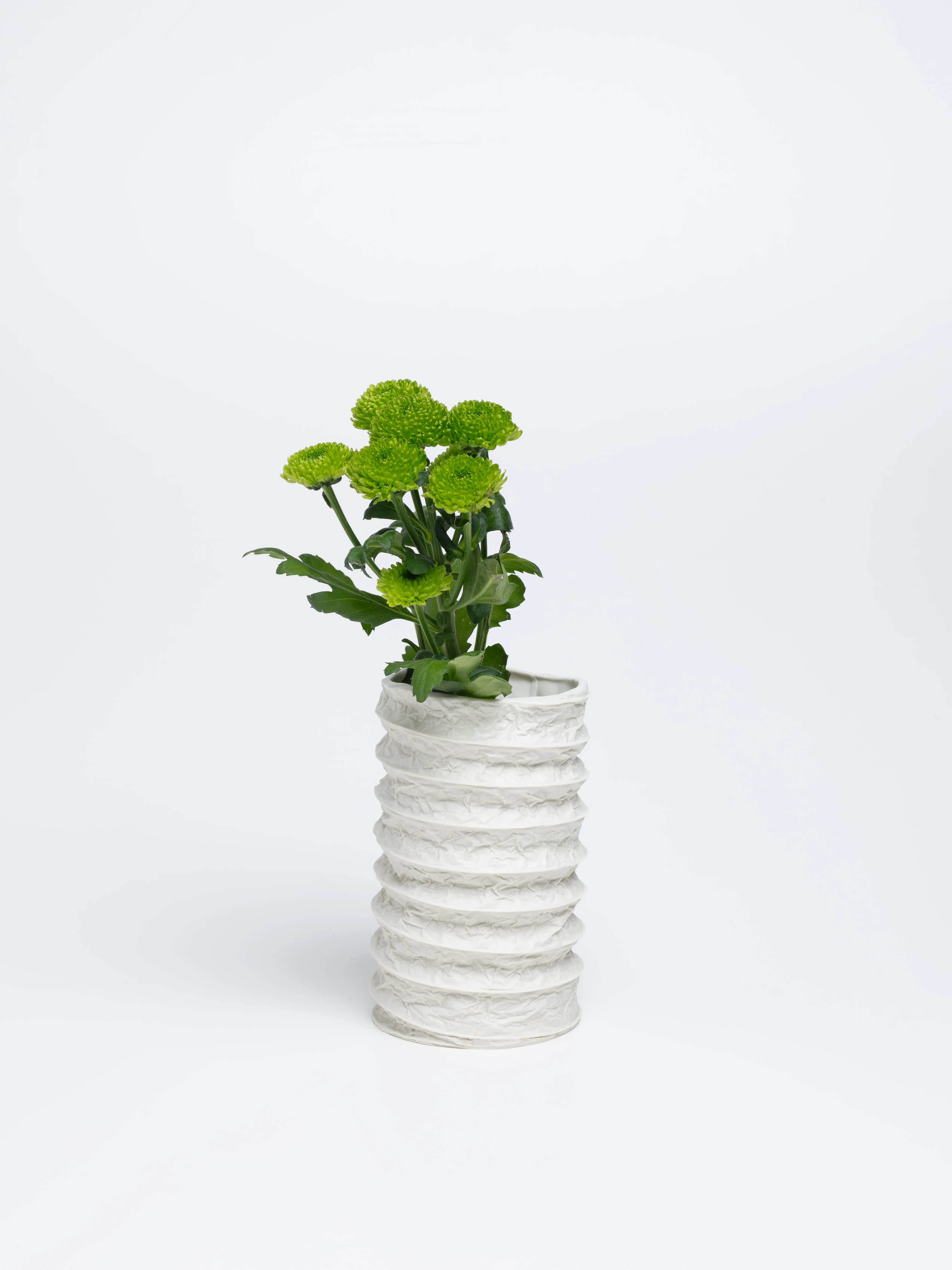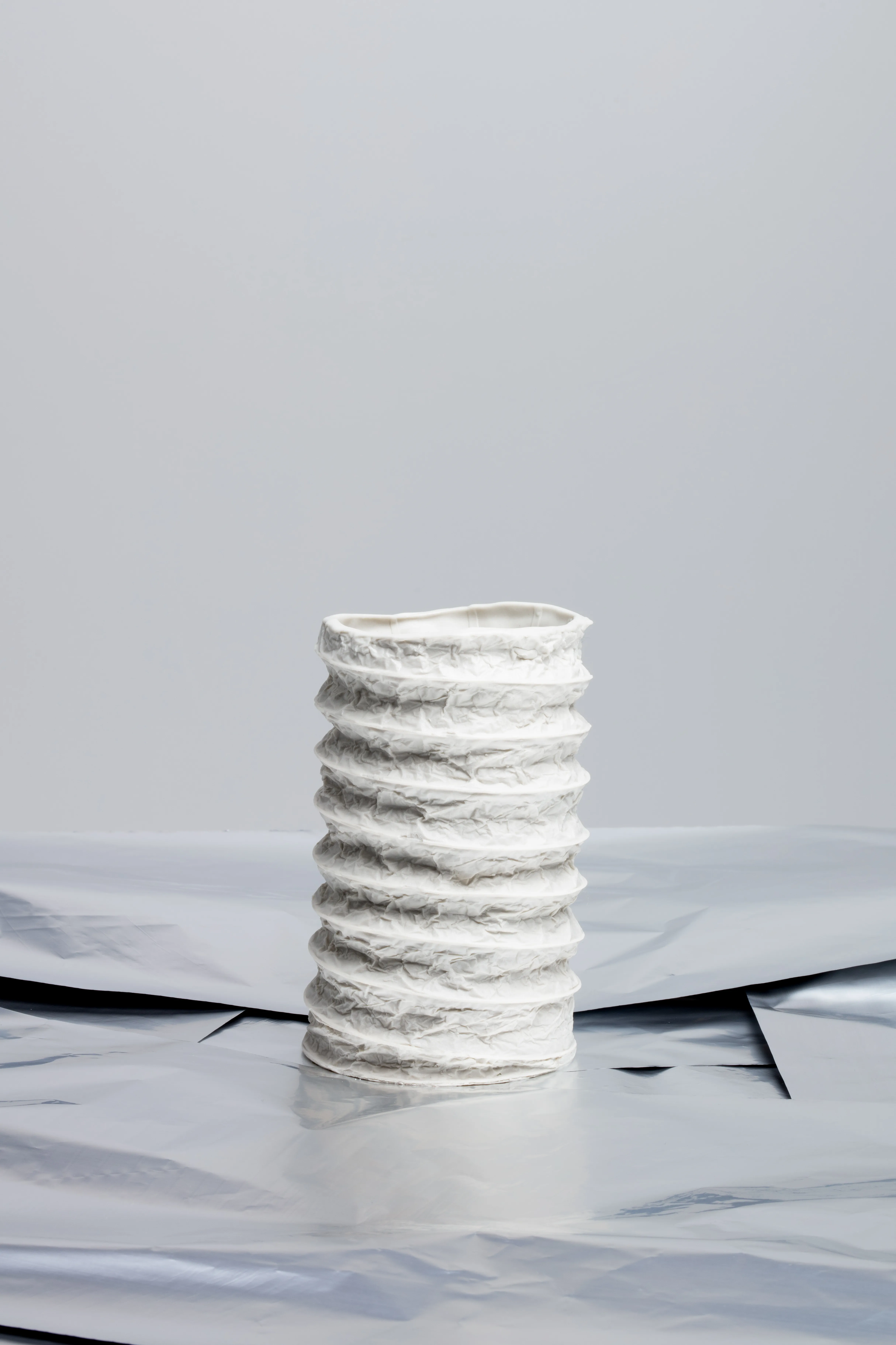 This vase is part of a series that focuses on bringing objects that are usually hidden or concealed into the spotlight. By using porcelain as a material, the object breaks with familiar viewing habits and transforms the hidden into a visual focal point.